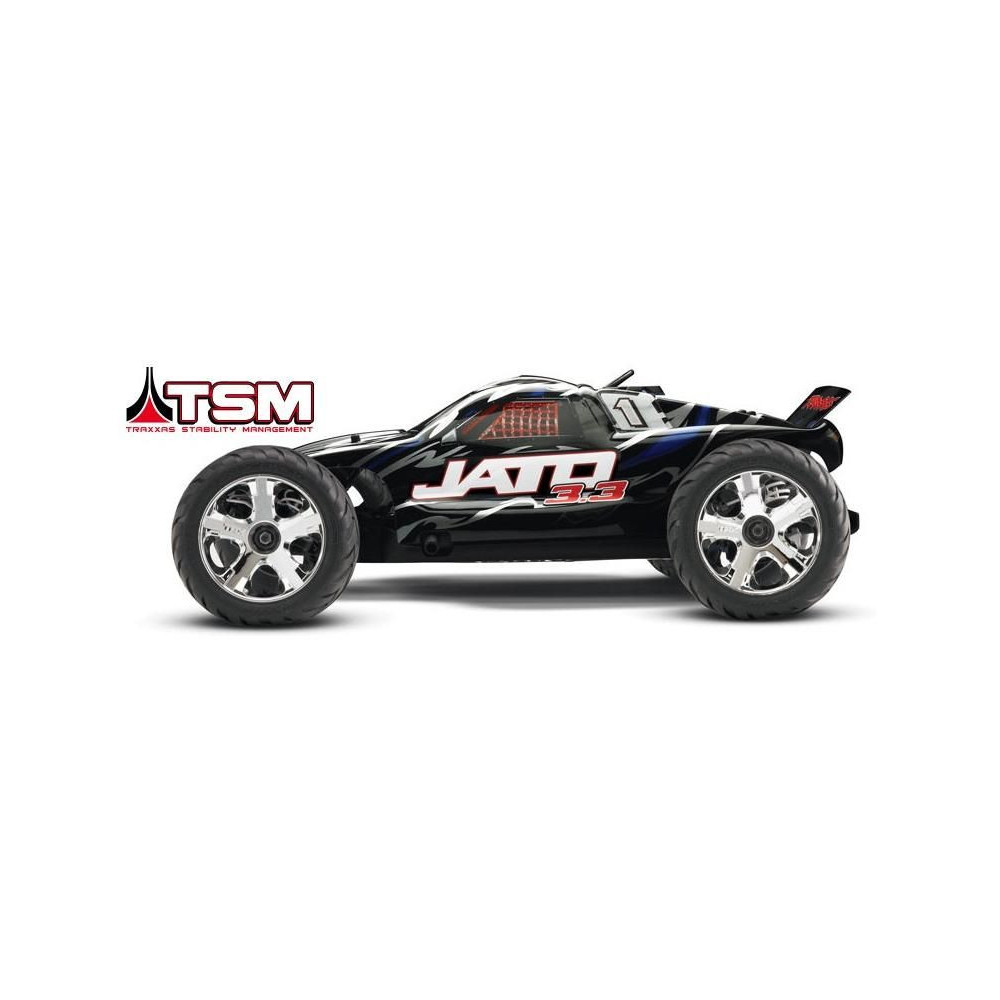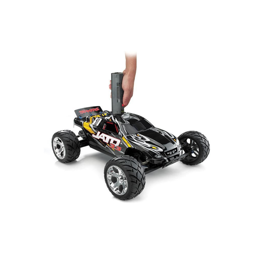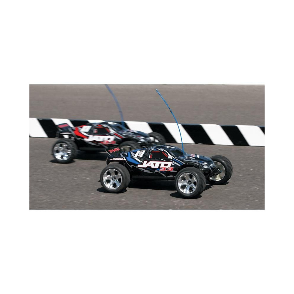 Az új Traxxas Jato a TRX 3.3 nitromotorral hihetetlen erővel bír. 0-ról 100 km/órás sebességre elképesztő 4,2 másodperc alatt gyorsul fel. Ez az RC modellautó olyan gyors, hogy a hátsó Wheelie kerekek is benne vannak. A motor óriási erejét egy automatikus, kétsebességes sebességváltó, súrlódó tengelykapcsoló és önzáró differenciálmű továbbítja az Anaconda™ versenykerekekre. A Resonator™ kipufogó tökéletes kipufogógázt és nagyszerű hangot biztosít.