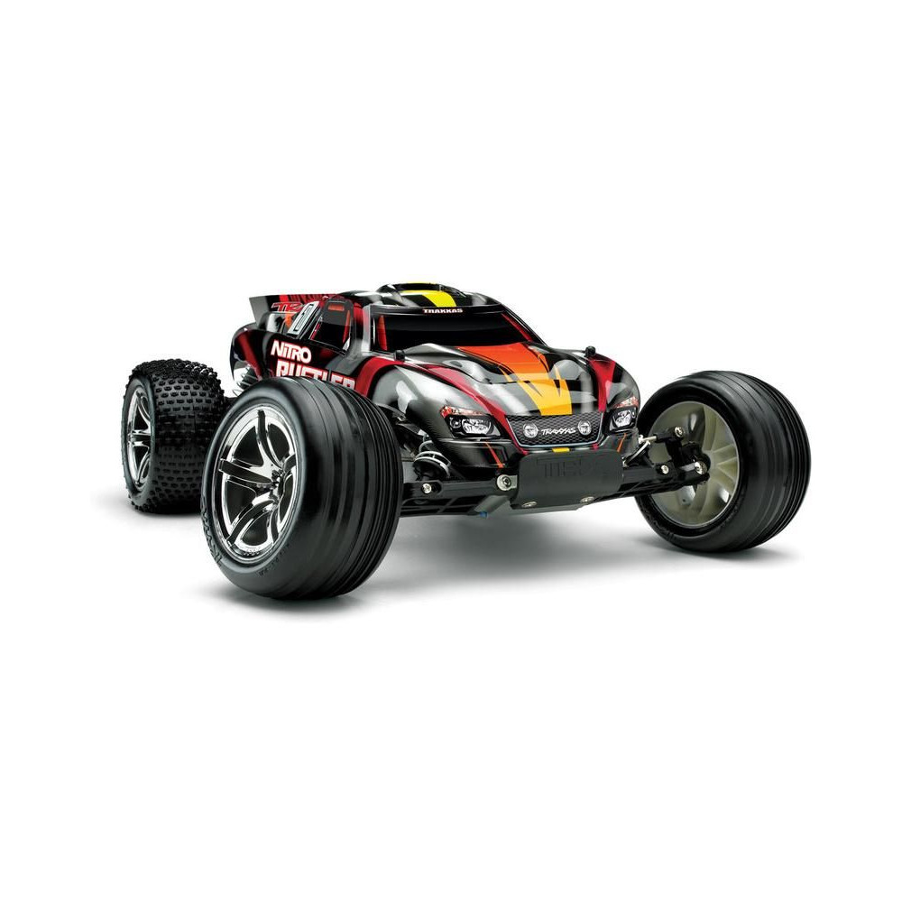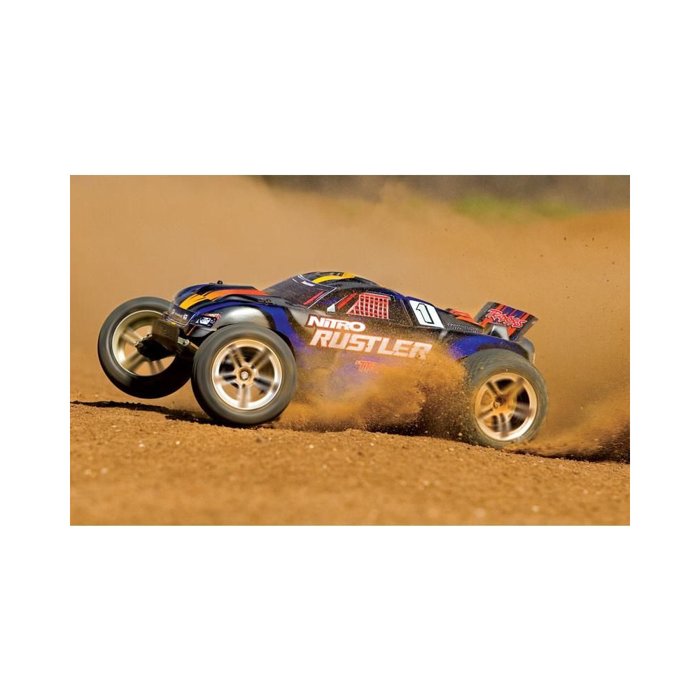 Traxxas Rustler Nitro RC autómodell egy erőteljes 2WD Truggy. A Rustler már gyárilag fel van szerelve a jól bevált verseny motorral TRX 2.5 amelynek köszönhetően könnyedén elbír az 50 km/h sebességgel is! A TRX 2.5 motor brutális gyorsulást ad az autónak, amit nagyra értékel, amikor elhagyja a kanyart, a műszaki pályákon, valamint a hosszú egyenes pályákon. A teljesen új kialakítás kiemeli a modell kecses vonalait, jó grafika, az alacsony súlypontja nagyszerű menettulajdonságokat ad. A Nitro Rustler 50 km/h feletti sebességet képes elérni.