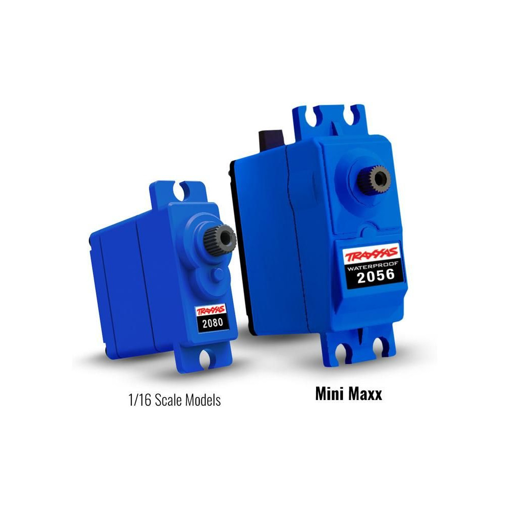 Digitális szervo standard méretű Traxxas szervo 2056 6.2kg.cm vízálló egyenáramú motorral és nejlon fogaskerekekkel, 6.2 kg.cm nyomatékkal és 0.20 s/60°@ 6.0 V sebességgel. A vízállóság* érdekében a szervo doboz tömítéssel van ellátva.