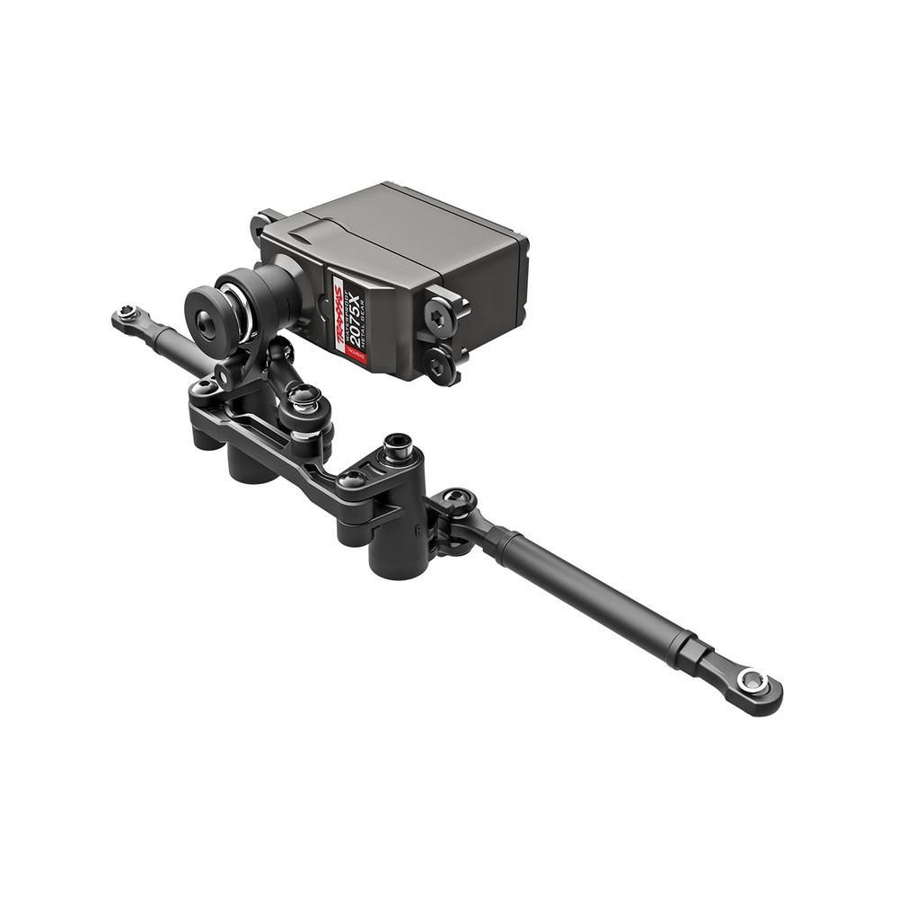 Az első kerekek forgatásának mechanikáját a Dual-Bell-Crank rendszer valósítja meg, amely biztosítja a rudak pontos mozgását a kerekekhez és korlátozza a rázkódás okozta kormányhatást. A kormánymű beépített bütykös szervokormány-védővel rendelkezik, amely elnyeli az ütéseket és védi a szervokormányt a túlterheléstől. A hosszú élettartam érdekében 1:10-es modellektől származó, szabványos méretű fém fogaskerekekkel ellátott szervót használnak.