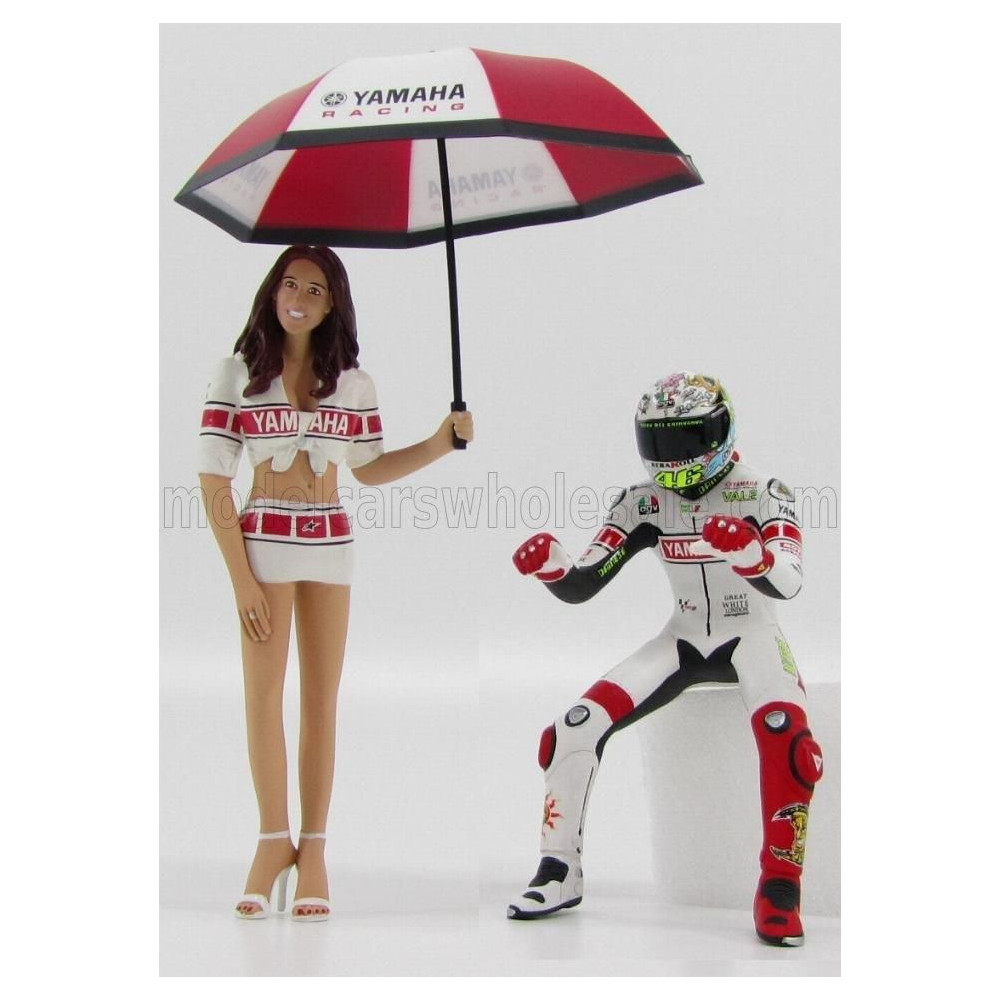 MINICHAMPS FIGURES PILOT VALENTINO ROSSI E OMBRELLINA GP VALENCIA 2005 - FEHÉR PIROS 1/12