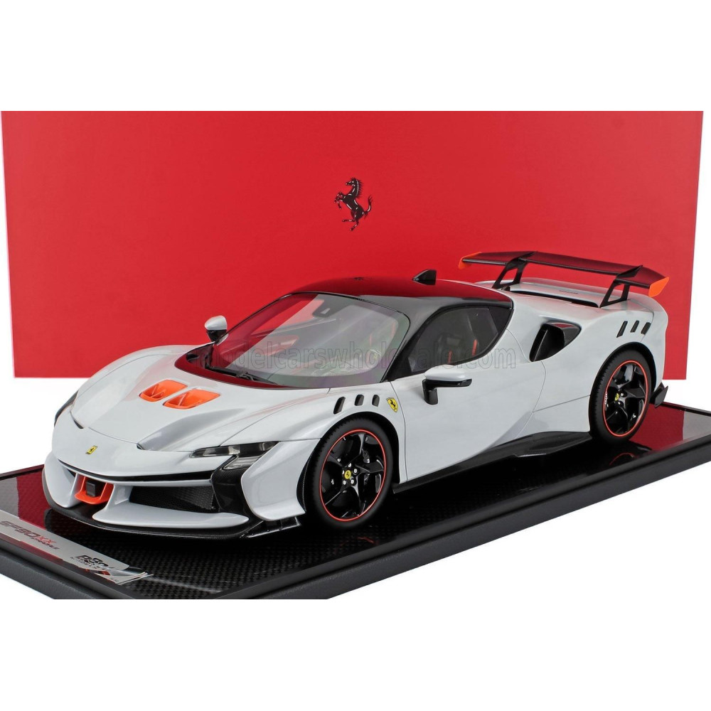 BBR MODELLEK FERRARI SF90 XX STRADALE 2024 - CON VETRINA - VITRINEL - BIANCO ARTICO - FEHÉR METÁT NARANCS FEKETE 1/12