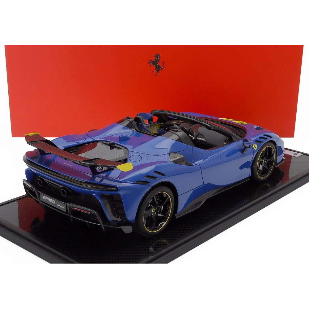 BBR MODELLEK FERRARI SF90 XX STRADALE SPIDER 2024 - CON VETRINA - VITRINEL - AZZURRO DINO - KÉK FEKETE SÁRGA 1/12
