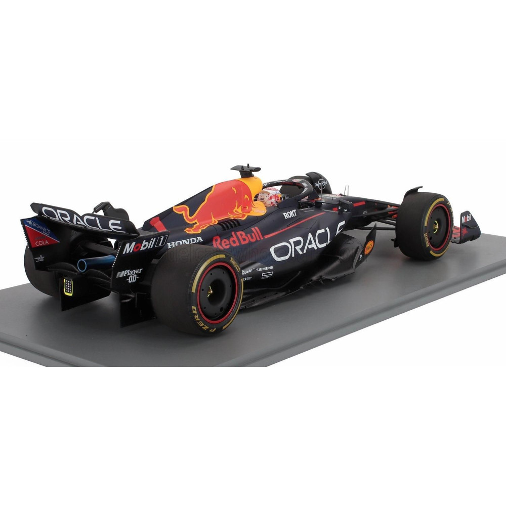 SPARK MODELL RED BULL F1 RB19 CSAPAT ORACLE RED BULL RACING N 1 VILÁGBAJNOK 2. SPRINT FUTAM KATARI GP BOXDESZKÁVAL 2023 MAX VE