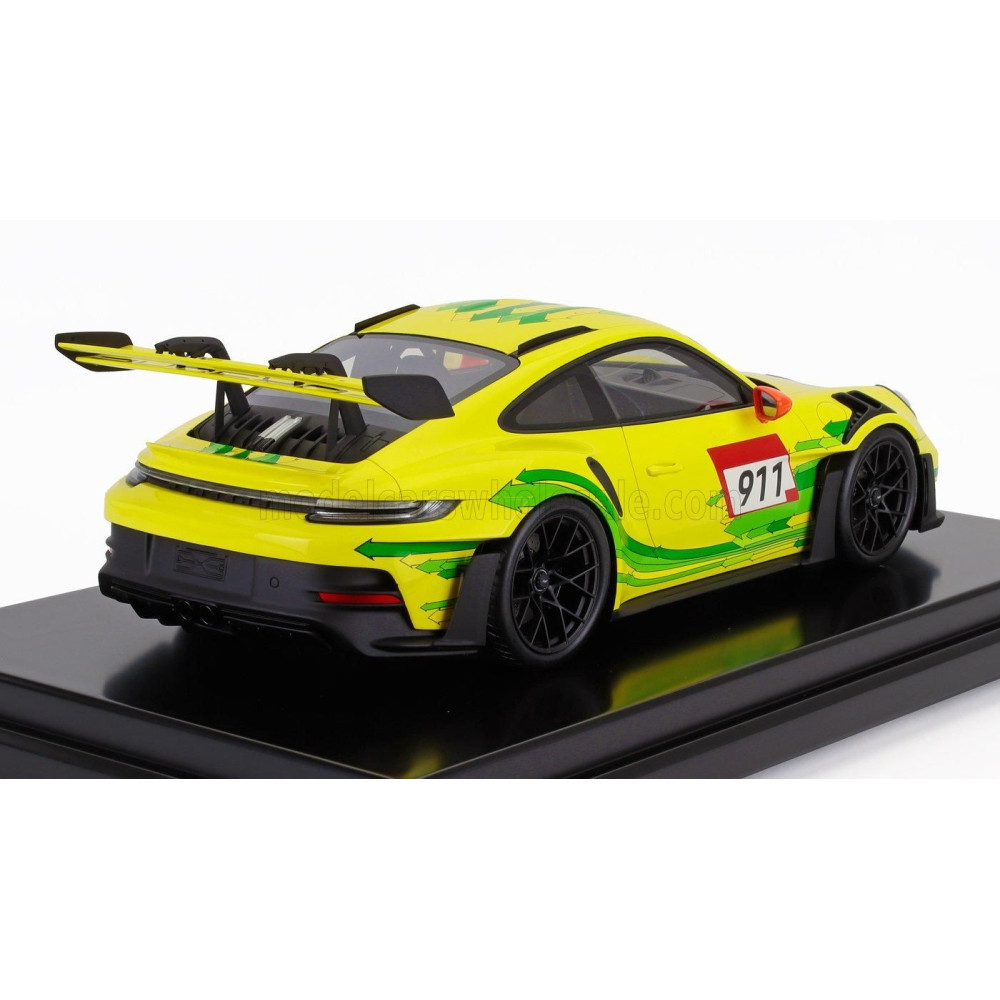 SPARK MODELL PORSCHE 911 992 GT3 RS N 911 COUPE 2023 - VETRINÁVAL - VITRINNAL - SÁRGA ZÖLD 1/12
