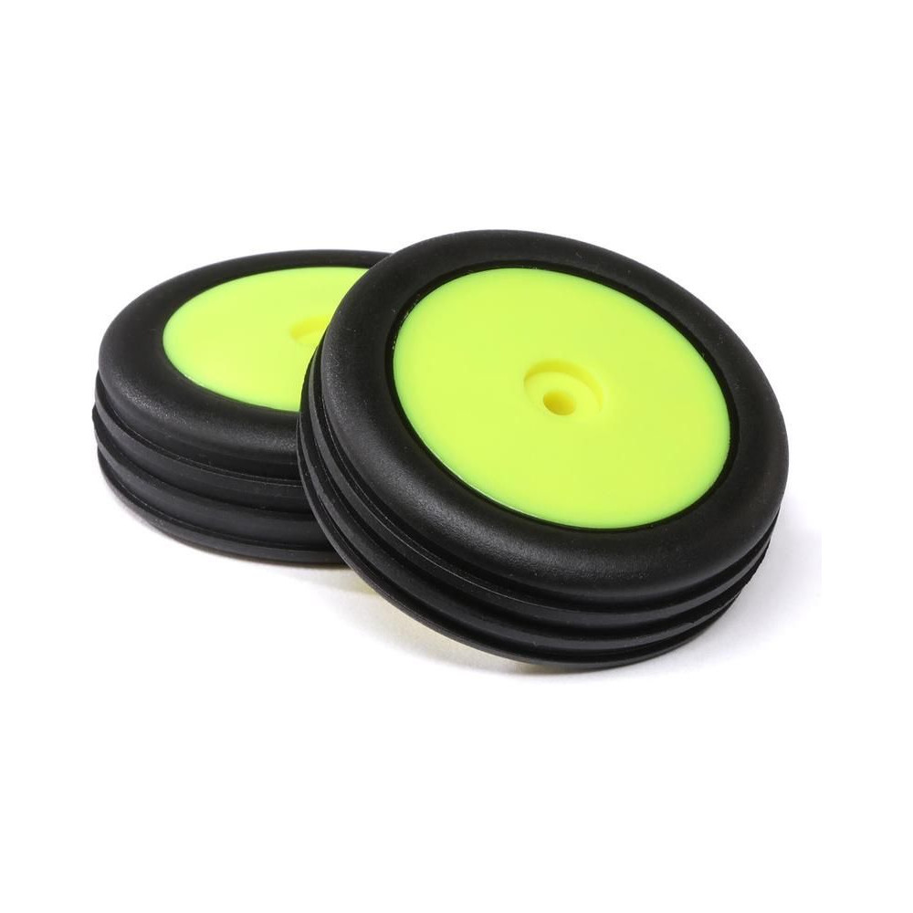 Alkatrész RC modellautókhoz Losi 1:16 Mini-B BL: kerék Wide Body Rib gumival, elöl, sárga tárcsa (2 db).