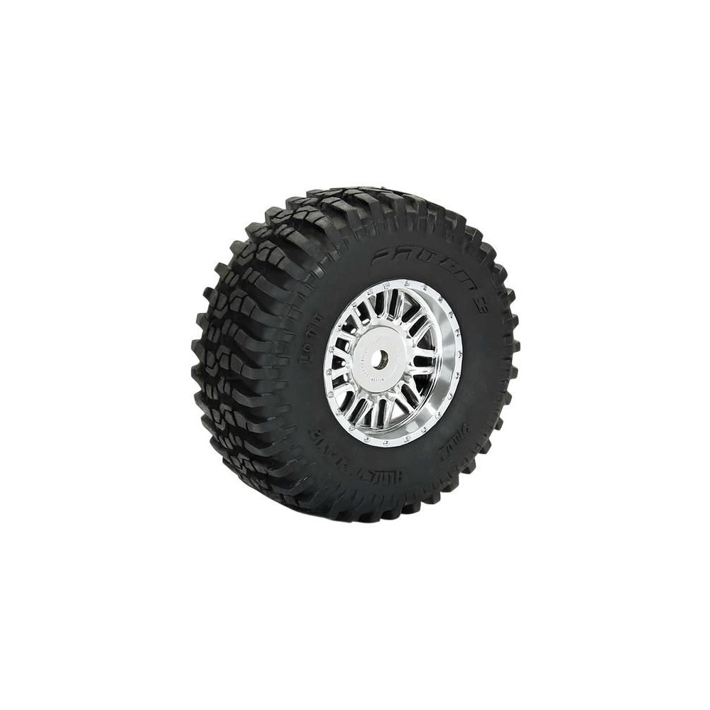Komplett Pro-Line kerekek 1:14 Typhon GROM 4WD RC autómodellekhez. Méret ⌀70x27mm. A Diablo tárcsa króm (külső) és fekete (belső) színű. Flat Iron gumik. A vezetőkar 12 mm-es hatszögletű.