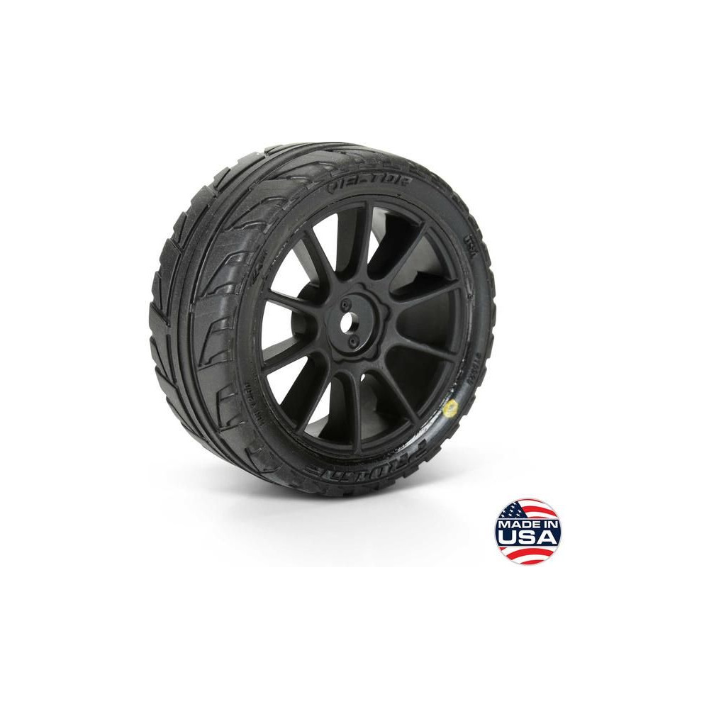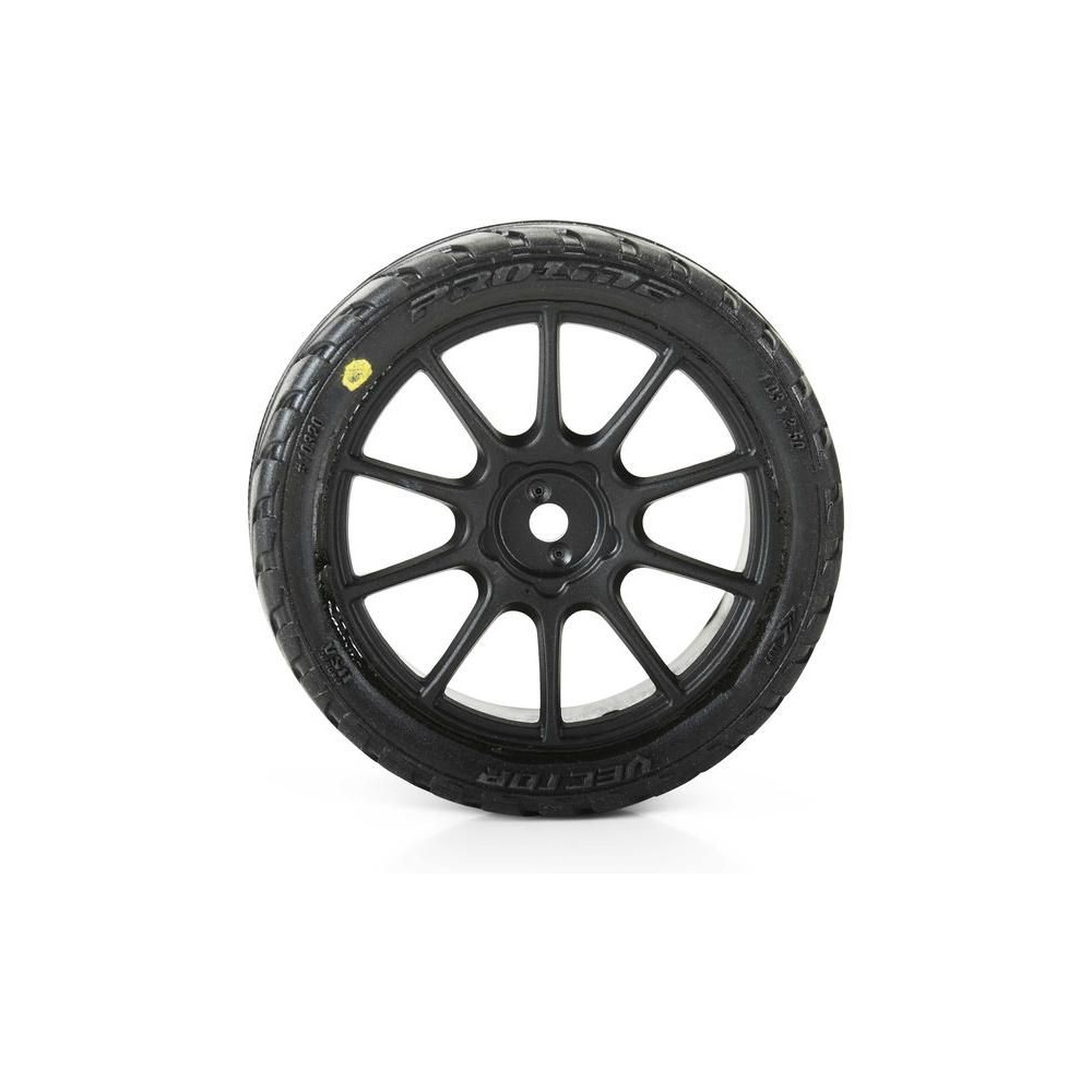 Pro-Line kerék 1:14 Vector gumikkal, fekete Mach 10 H12mm felnivel (4): Typhon Grom