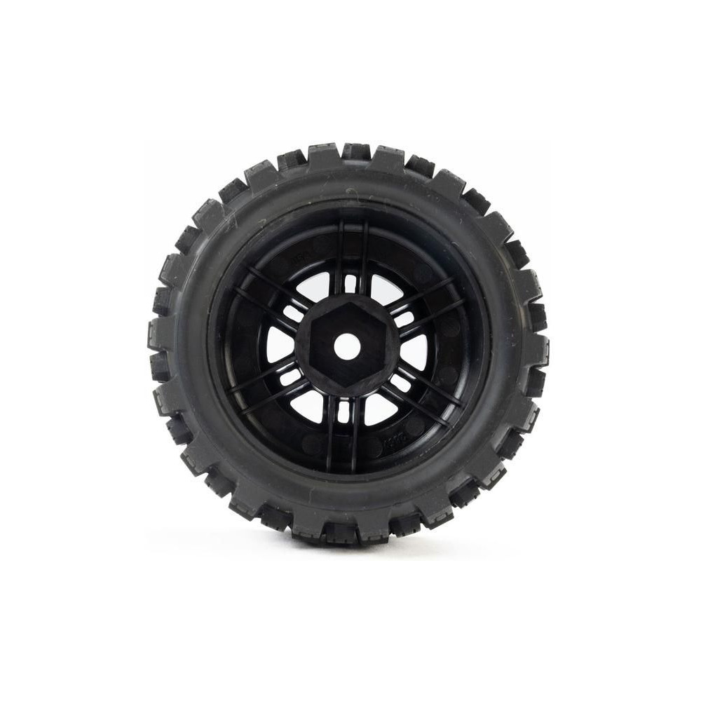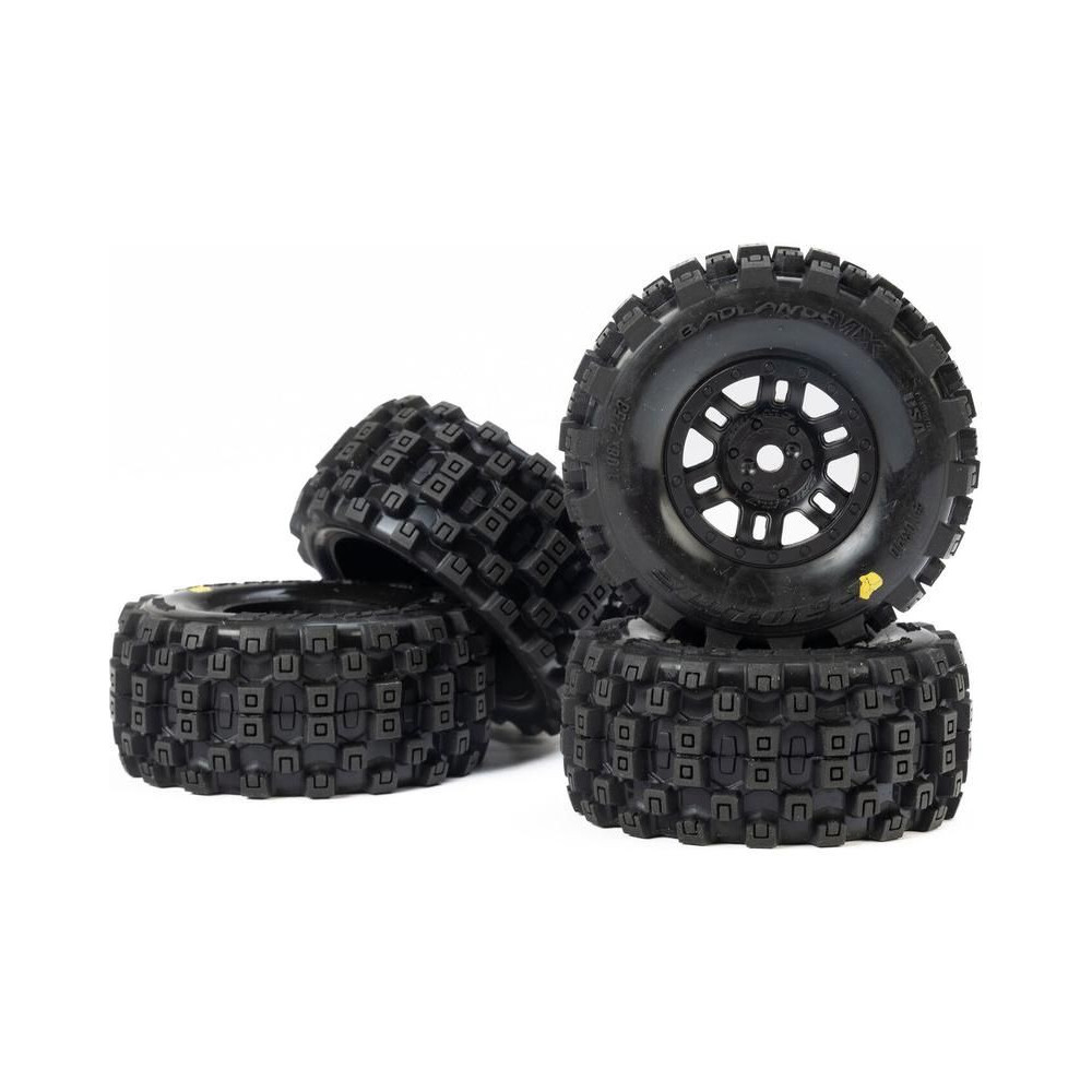 Komplett Pro-Line kerekek 1:16 Mojave GROM RC autó modellekhez. Méret ⌀64x27mm. A Split Six tárcsafék fekete. Badlands MX gumik, M2 (közepes) keménységű keverék. A hajtókar 12 mm-es hatszögletű.