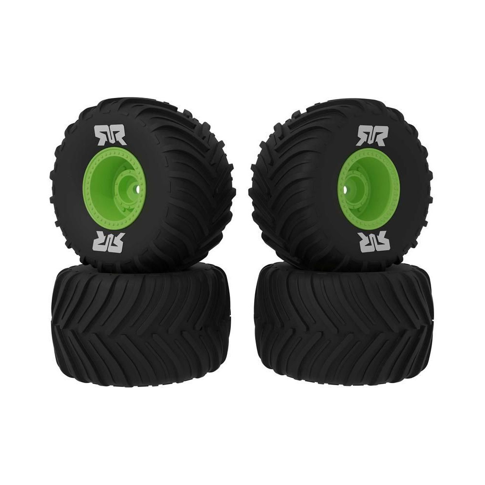 Alkatrész Arrma Grom RC autómodellekhez: dBoots Chevron MT gumiabroncsokkal szerelt kerék, zöld tárcsafék (4).