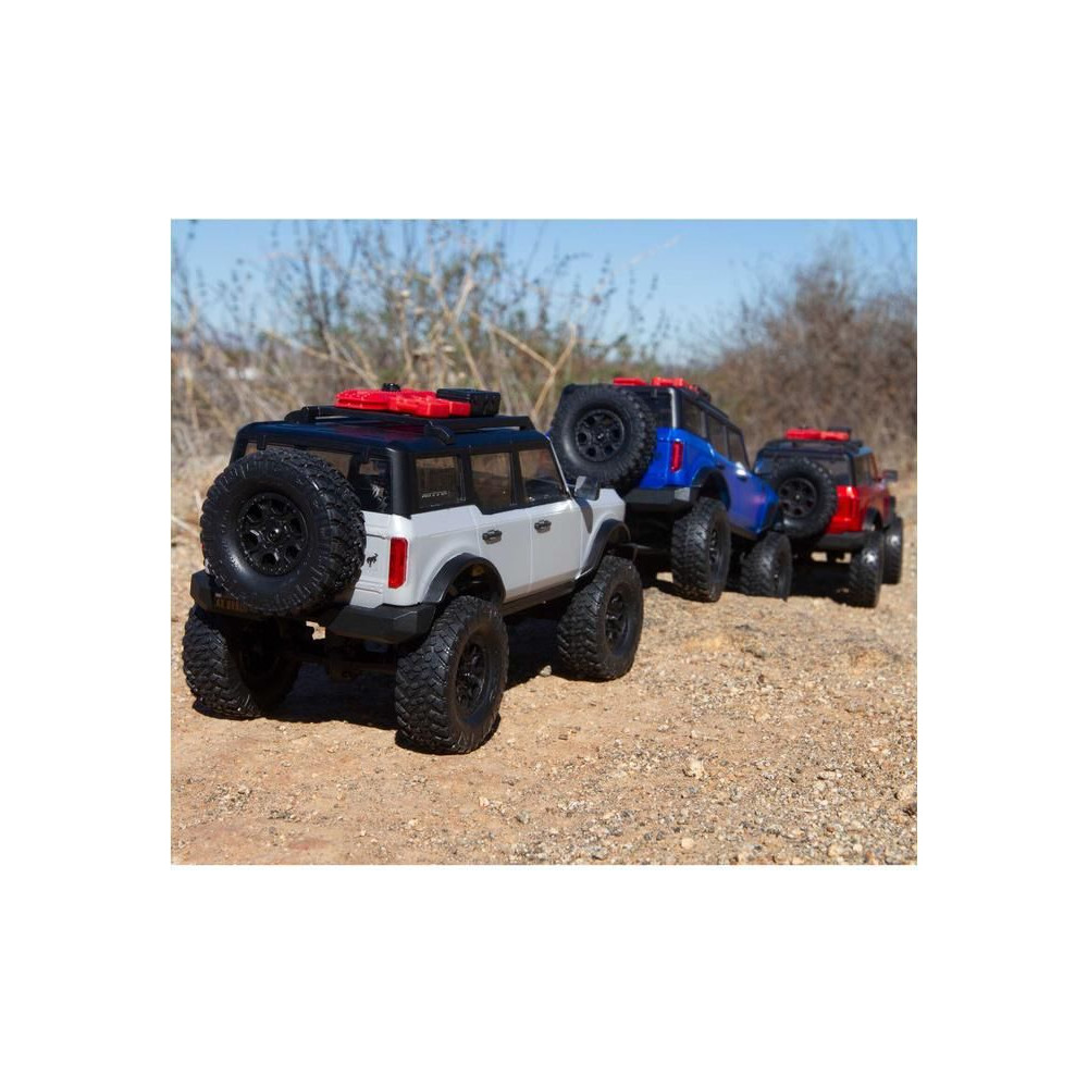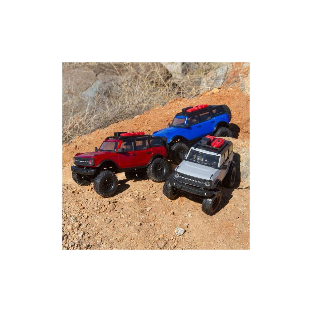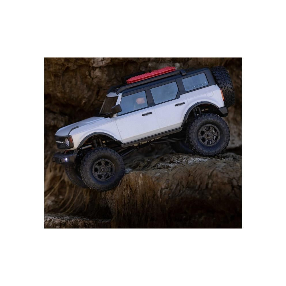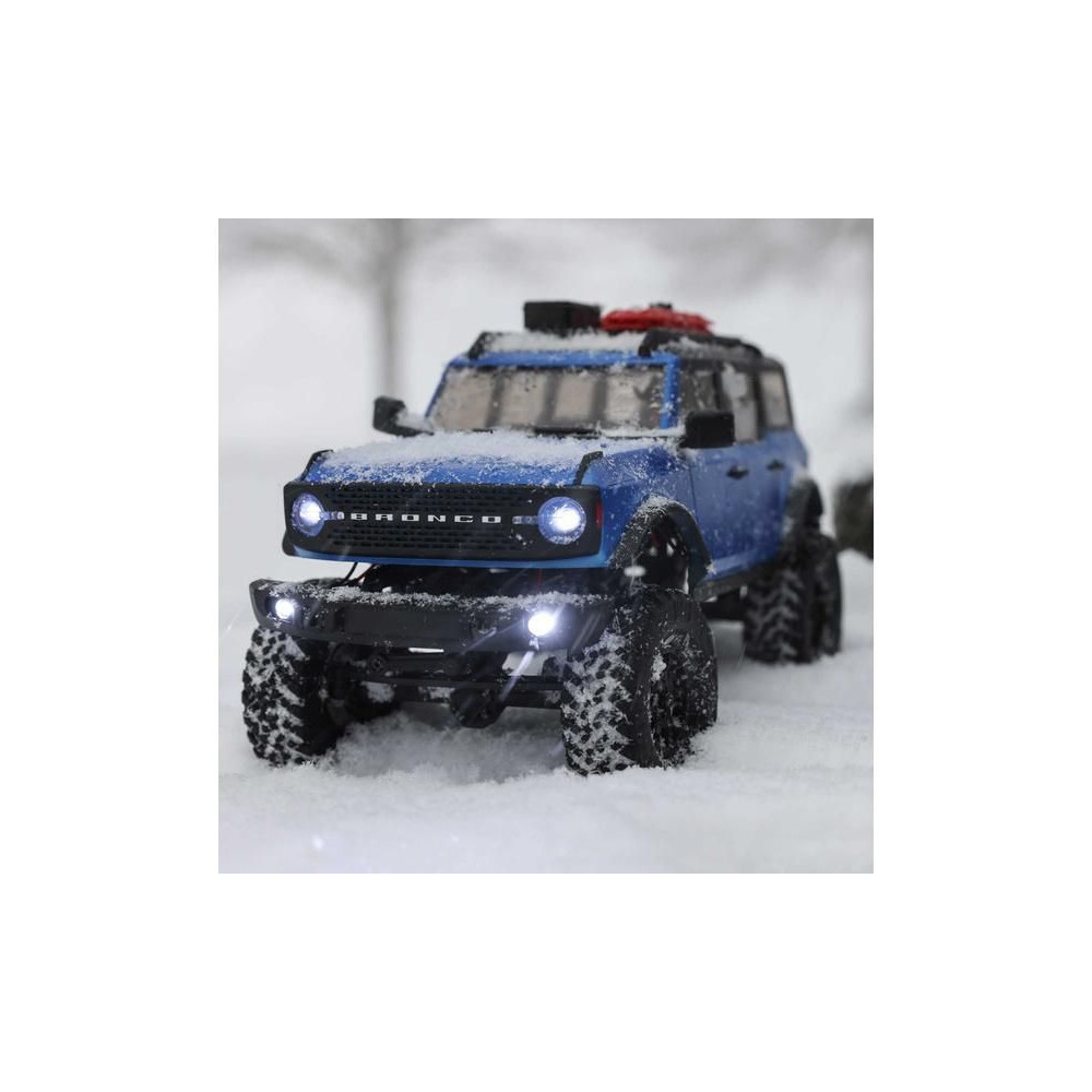 1:24 méretarányú RC Axial SCX24 modell Axial SCX24 távirányítós autómodell, hihetetlenül részletes Ford Bronco 2021 karosszériával és LED világítással. Minden, amire szüksége van, benne van. 2.4GHz RC készlet, Dynamite® 88T motor, Dynamite 350mAh 7.4V LiPol akkumulátor USB töltővel. Vezetési idő legfeljebb 40 perc.