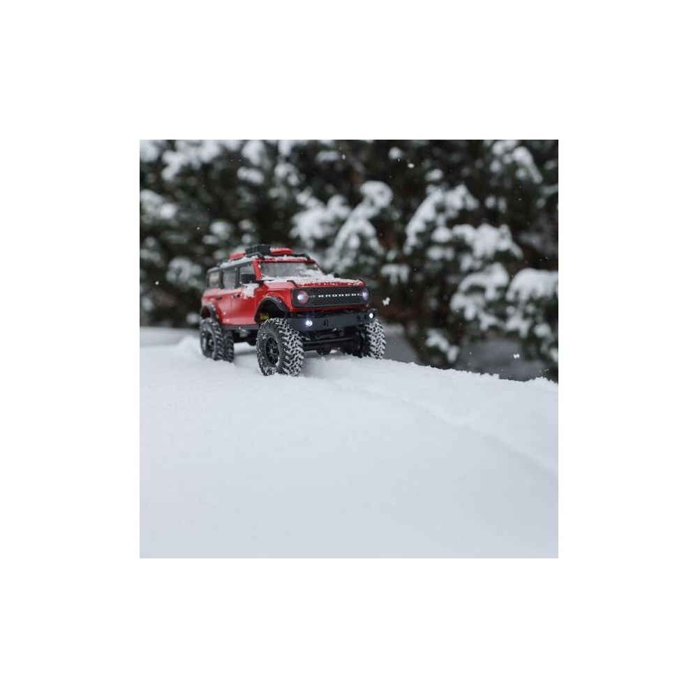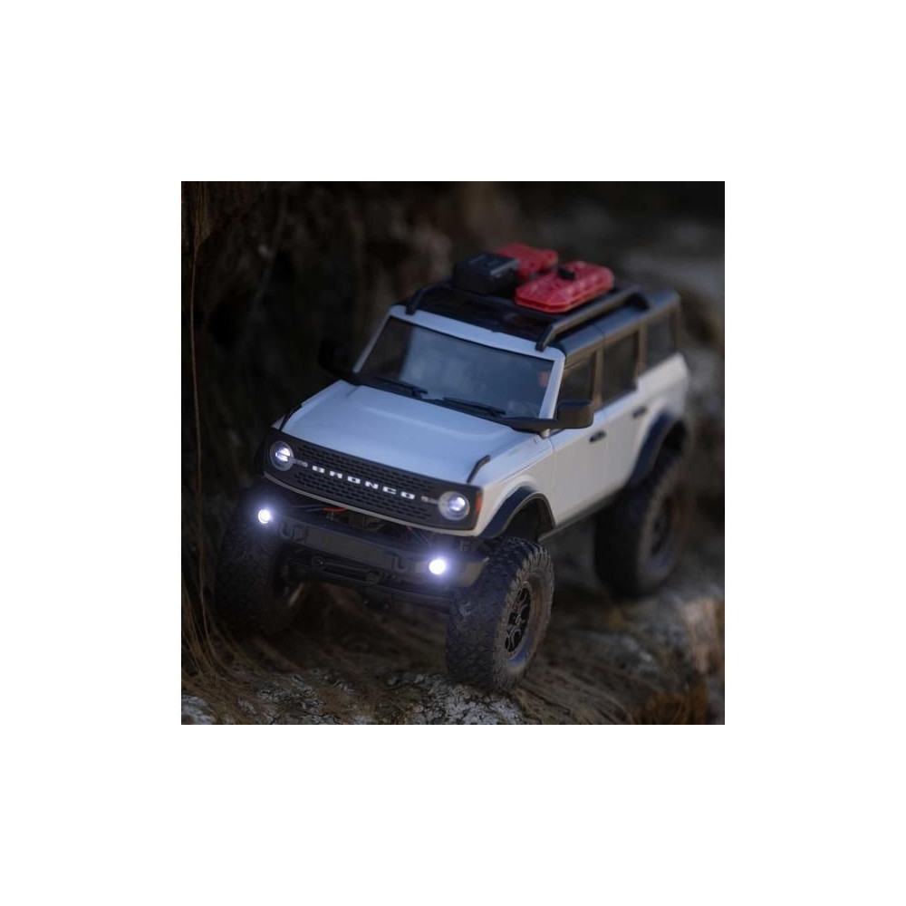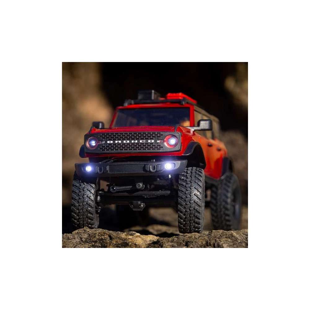 1:24 méretarányú RC Axial SCX24 modell Axial SCX24 távirányítós autómodell, hihetetlenül részletes Ford Bronco 2021 karosszériával és LED világítással. Minden, amire szüksége van, benne van. 2.4GHz RC készlet, Dynamite® 88T motor, Dynamite 350mAh 7.4V LiPol akkumulátor USB töltővel. Vezetési idő legfeljebb 40 perc.