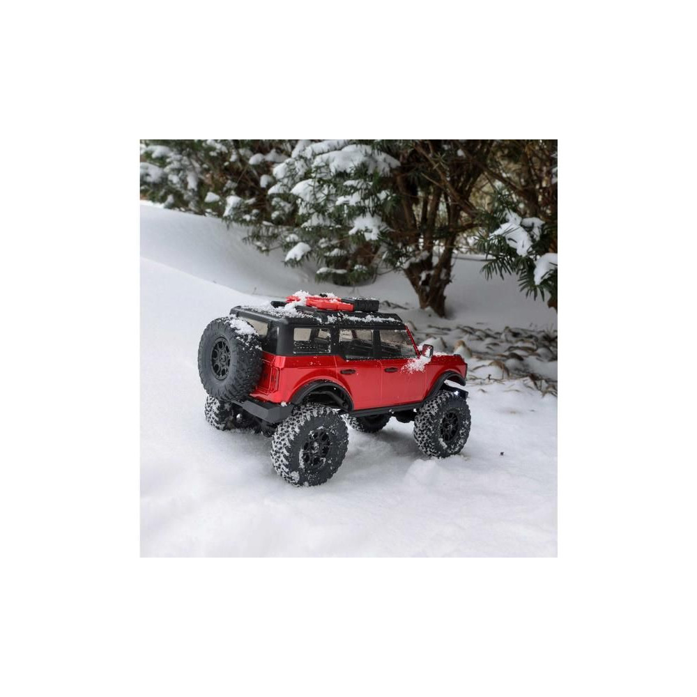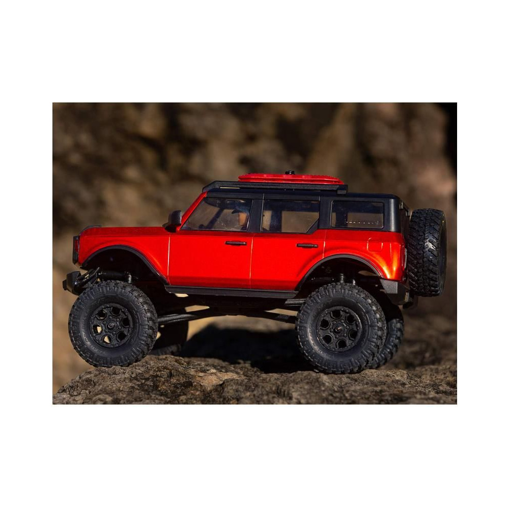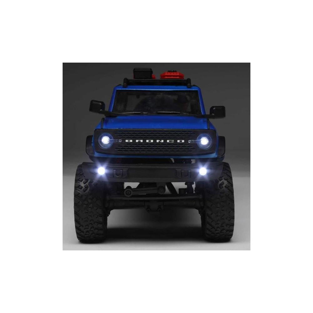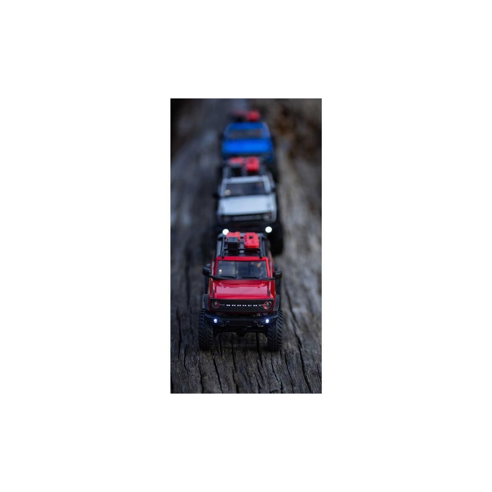1:24 méretarányú RC Axial SCX24 modell Axial SCX24 távirányítós autómodell, hihetetlenül részletes Ford Bronco 2021 karosszériával és LED világítással. Minden, amire szüksége van, benne van. 2.4GHz RC készlet, Dynamite® 88T motor, Dynamite 350mAh 7.4V LiPol akkumulátor USB töltővel. Vezetési idő legfeljebb 40 perc.