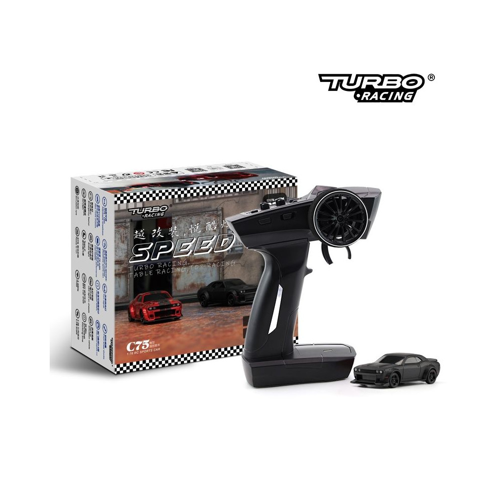 RTR 1:76-os RC modell szett adóval. Teljesen arányos kormányzás, 50%-kal megnövelt sebesség, cserélhető 75mAh akkumulátor, akár 40 perc vezetési idővel. Első és hátsó fényszórók, irányjelzők, neonlámpák, hátsókerék meghajtás, állítható tengelytáv.