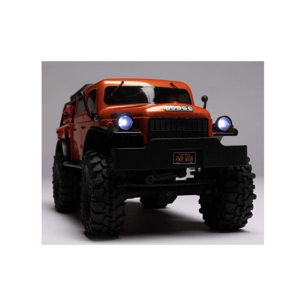 Az Axial SCX24 Dodge Power Wagon az 1940-es évekből egy egyedi változatát kínálja ennek az Off-Road klasszikusnak, mint a bevált SCX24 platformra épített négyajtós kocsi. Ez a modell hozzáadható az SCX24 készletek gyűjteményéhez. Ez a tökéletes választás mindenkinek, aki teljesítményt és értéket szeretne egy RC lánctalpasban.