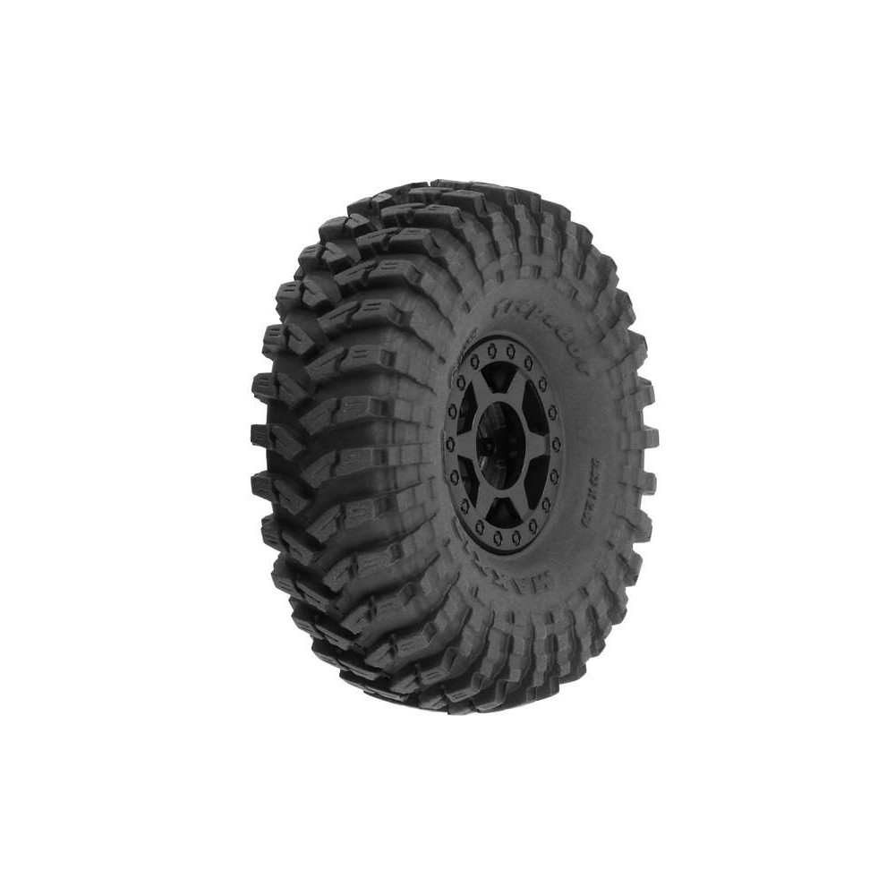 Pro-Line kerék 1:24 méretarányú gumiabronccsal, Maxxis Trepador 1.0" Mini Holcomb Black belső Bead-Loc és H7mm hatszögletű kerékkel (4 db csomagban), mini lánctalpas SCX24™ és AX24™ RC autómodellekhez. Első és hátsó kerekekhez. Ultra-agresszív oldalfalak a kiváló tapadásért homokon és sziklákon, többszörösen ívelt futófelület lapátok a jobb tapadásért csúszós terepen.