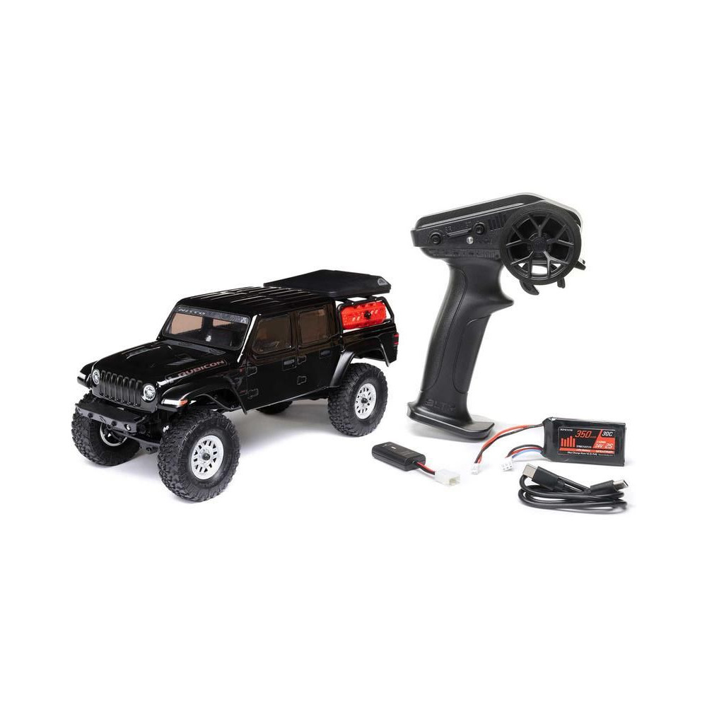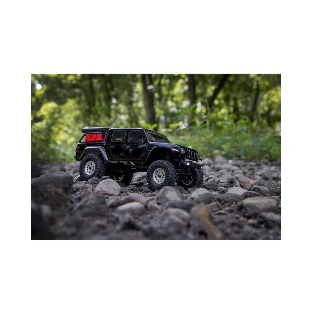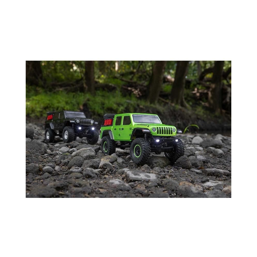 RC modellautó 1:24 méretarányban Axial SCX24, Jeep JT Gladiator karosszériával és LED világítással. A csomagban minden megtalálható, amire szükséged van. 2,4GHz-es RC készlet, új vezérlő, Dynamite® 88T motor, Dynamite 350mAh 7,4V LiPol akkumulátor USB töltővel. Vezetési idő akár 40 percig.