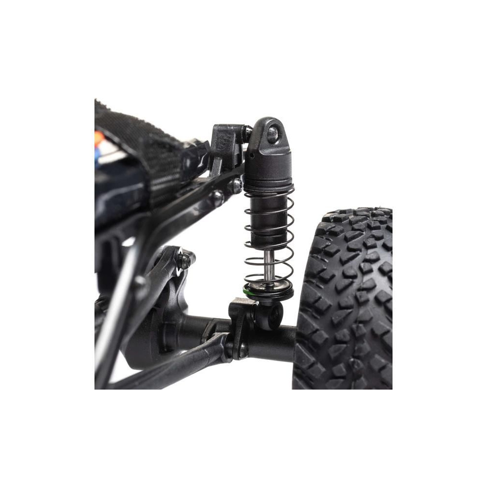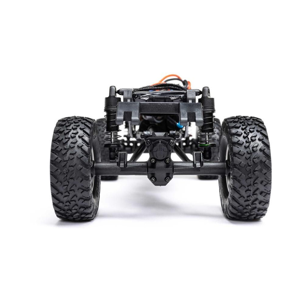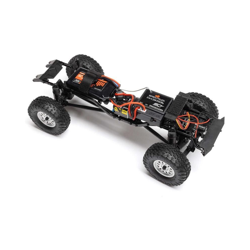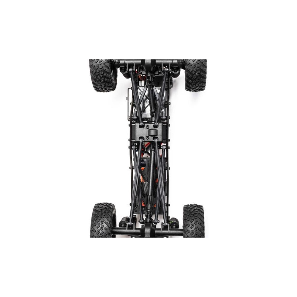 Az SCX24™ alváza minden kihívásnak megfelel az állandó összkerékhajtással, az első 3 pontos és a hátsó 4 pontos felfüggesztéssel, amely mindig alkalmazkodik a terepviszonyokhoz. A reális acélváz elég merev ahhoz, hogy ellenálljon a csavarodásnak, a tengelyeken lévő csigakerekek pedig növelik a hasmagasságot. A 22 mm-rel hosszabb tengelytáv növeli a stabilitást, míg a masszív első és hátsó tengelyek, az első tengelycsapok és az acél féltengelyek lehetővé teszik, hogy magabiztosan másszon le az akadályokról.