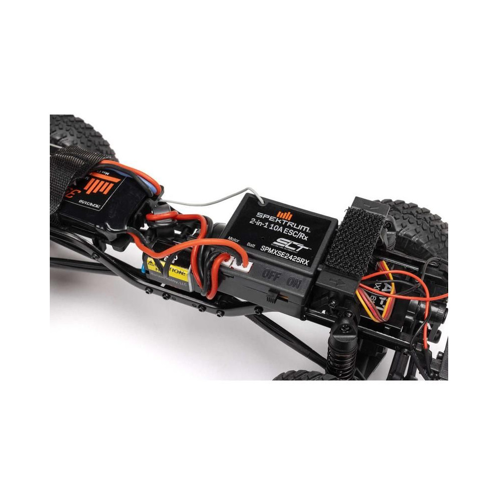 A kétcsatornás Spektrum SLT2 adó számos hasznos funkciót kínál, mint például a gázkar útjának beállítása, valamint a gázkar vezérlése és korlátozása. Ergonómikus kialakítású a hosszú, fáradtságmentes utazásokhoz, és habszivacs kormánykerékkel rendelkezik a pontos irányításhoz. Az RTR csomag így teljes, beleértve az AA jeladó elemeket is.