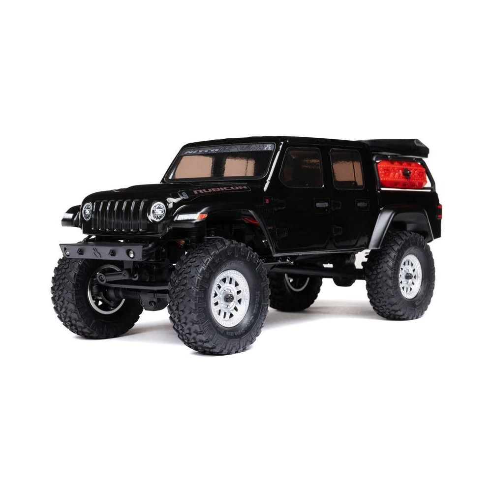 1:24 méretarányú RC modell autó Axial SCX24 Jeep JT Gladiator V2 karosszériával és LED világítással az első lökhárítóban. A csomagban minden megtalálható, amire szüksége van. A modell a bevált off-road egyedi SCX24 alváz mellett új vezérlőegységgel és Spektrum RC készlettel van felszerelve. A fejlesztéseket olajjal töltött lengéscsillapítók egészítik ki, amelyek simán elnyelik az ütéseket, és a modell terepen is stabil marad. A modell üzemideje akár 40 perc is lehet.