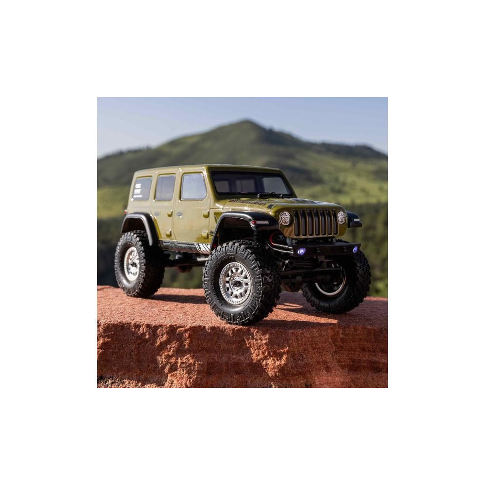 A valósághű karosszéria egy SCX24 alvázon ül, amelynek tengelyei licencelt KMC Machete kerekekkel és Nitto Trail Grappler abroncsokkal rendelkeznek. Az első lökhárítóban lévő két LED megvilágítja az autó előtti területet az éjszakai vezetéshez. Az akkumulátorhoz való gyors hozzáféréshez csak távolítsd el az egyik klipszet, és döntsd hátrafelé a karosszériát. A csomag tartalmaz egy Spektrum 2,4 GHz-es jeladót, egy 350mAh LiPo akkumulátort, egy praktikus USB töltőt és négy AA elemet az adóhoz.