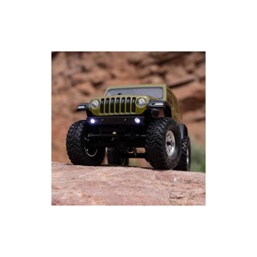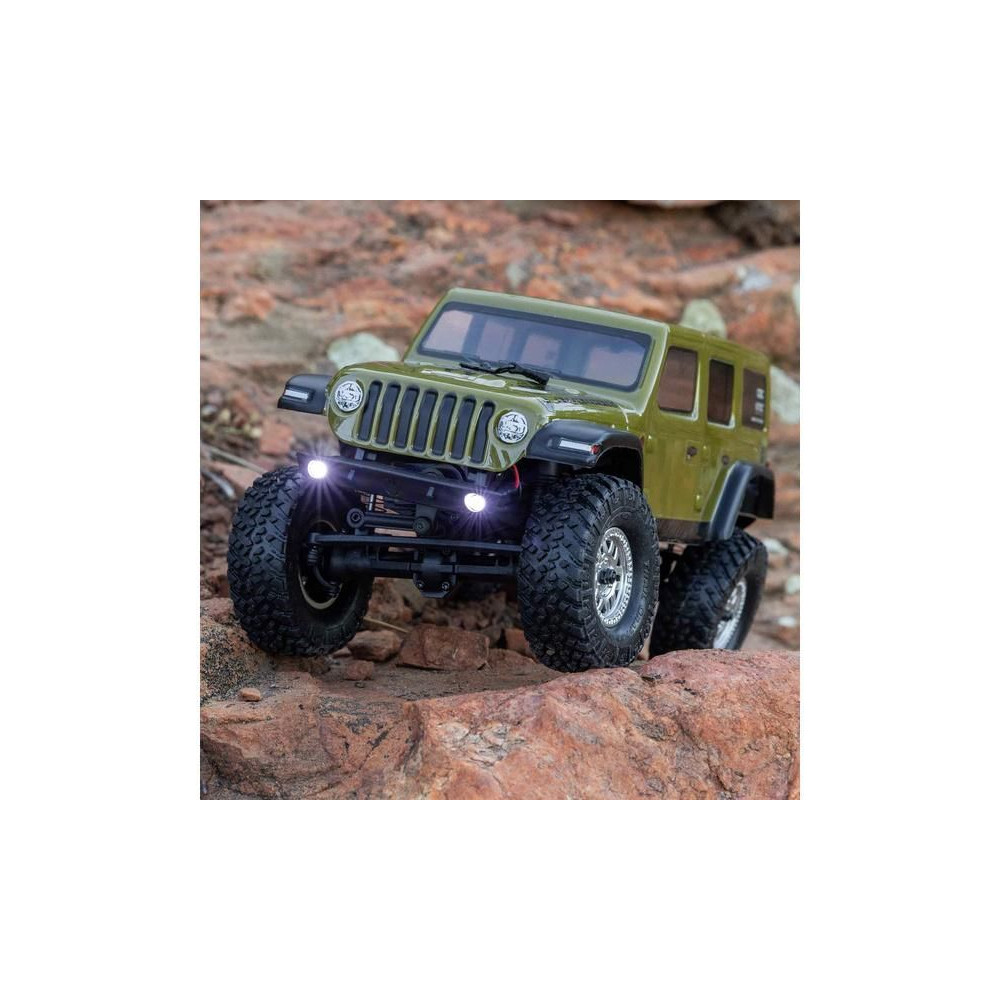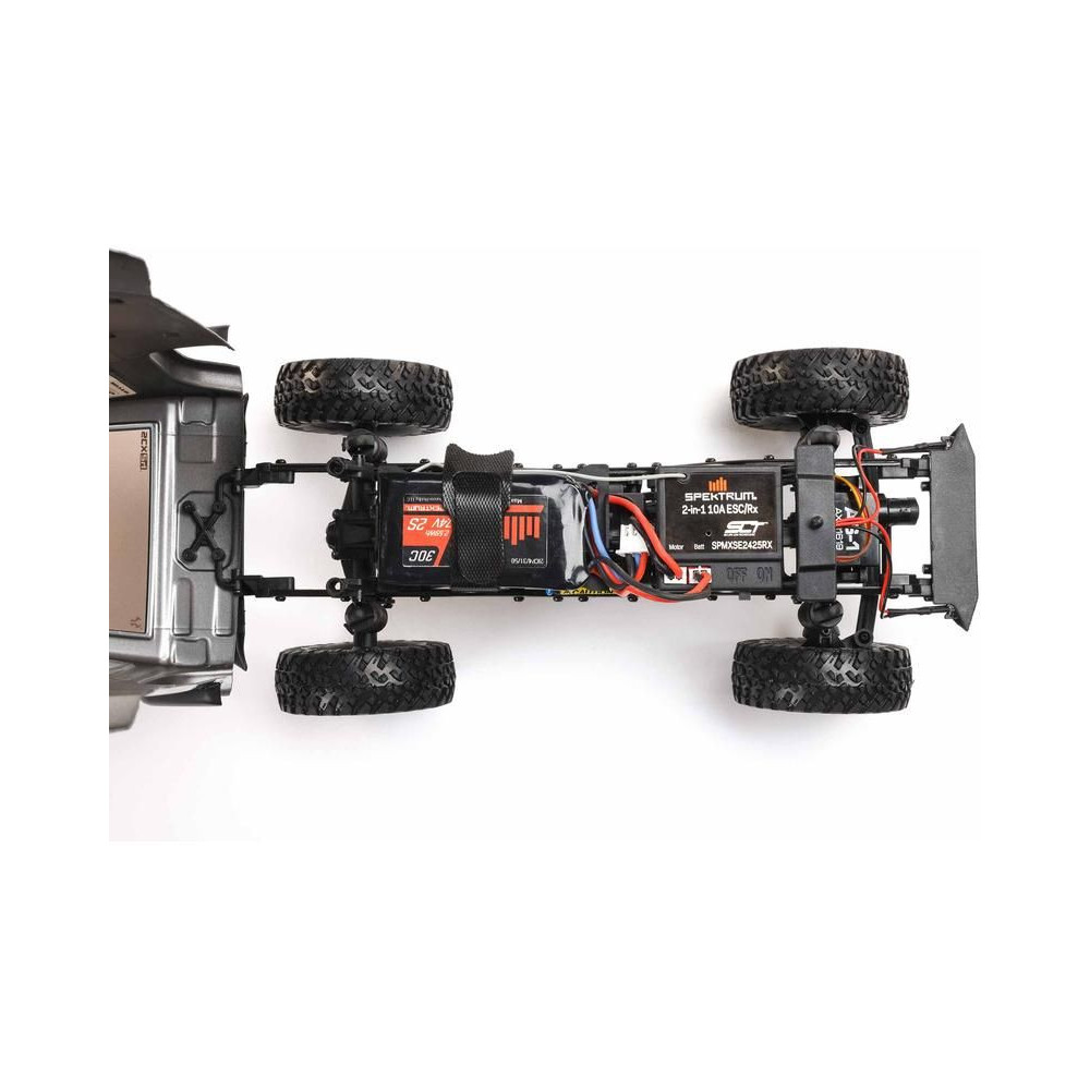 A valósághű karosszéria egy SCX24 alvázon ül, amelynek tengelyei licencelt KMC Machete kerekekkel és Nitto Trail Grappler abroncsokkal rendelkeznek. Az első lökhárítóban lévő két LED megvilágítja az autó előtti területet az éjszakai vezetéshez. Az akkumulátorhoz való gyors hozzáféréshez csak távolítsd el az egyik klipszet, és döntsd hátrafelé a karosszériát. A csomag tartalmaz egy Spektrum 2,4 GHz-es jeladót, egy 350mAh LiPo akkumulátort, egy praktikus USB töltőt és négy AA elemet az adóhoz.