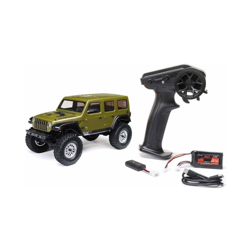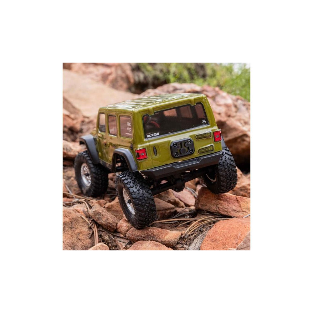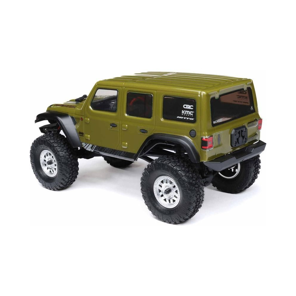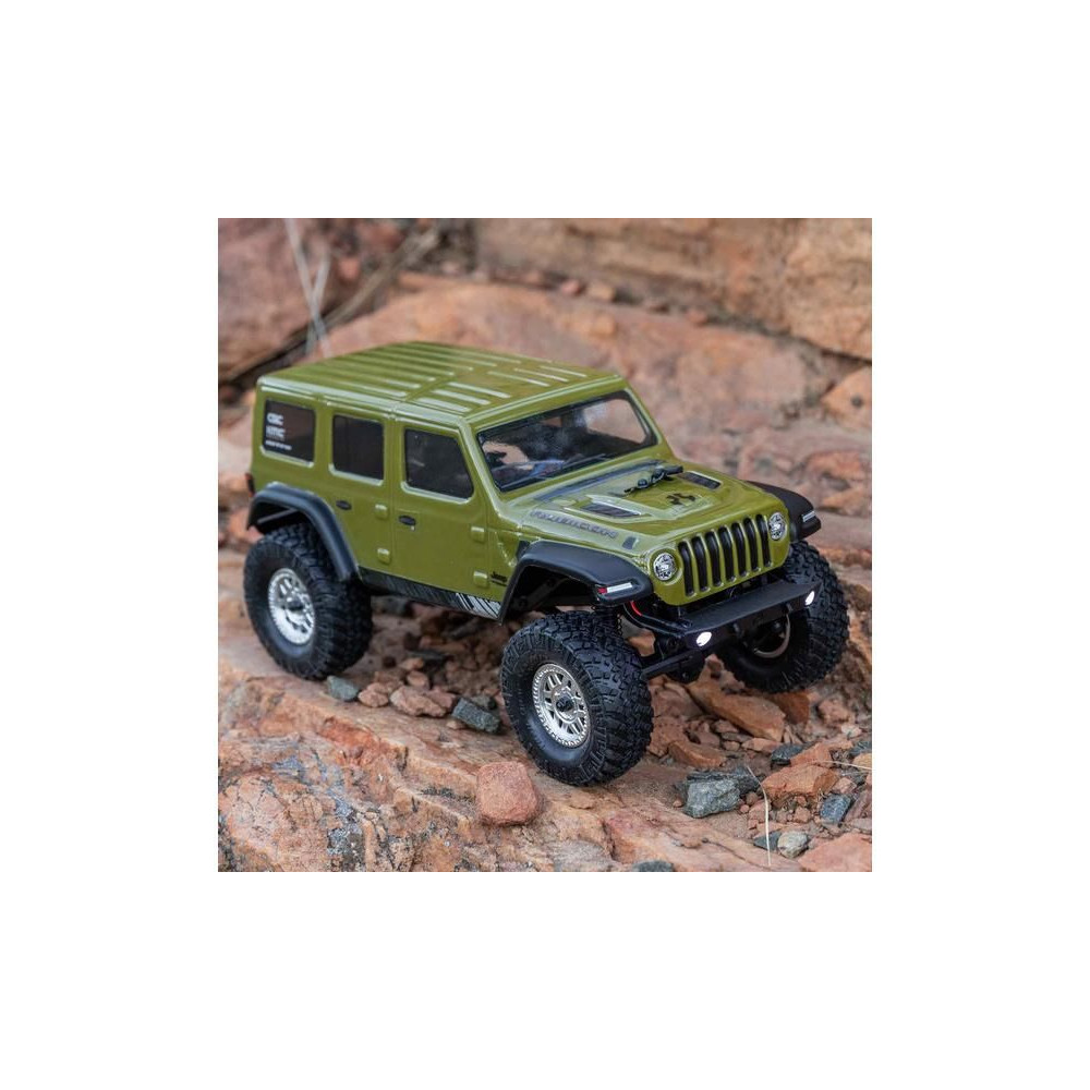 A valósághű karosszéria egy SCX24 alvázon ül, amelynek tengelyei licencelt KMC Machete kerekekkel és Nitto Trail Grappler abroncsokkal rendelkeznek. Az első lökhárítóban lévő két LED megvilágítja az autó előtti területet az éjszakai vezetéshez. Az akkumulátorhoz való gyors hozzáféréshez csak távolítsd el az egyik klipszet, és döntsd hátrafelé a karosszériát. A csomag tartalmaz egy Spektrum 2,4 GHz-es jeladót, egy 350mAh LiPo akkumulátort, egy praktikus USB töltőt és négy AA elemet az adóhoz.