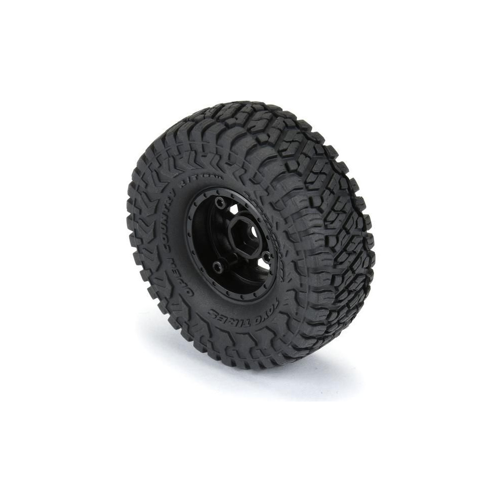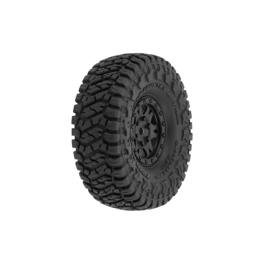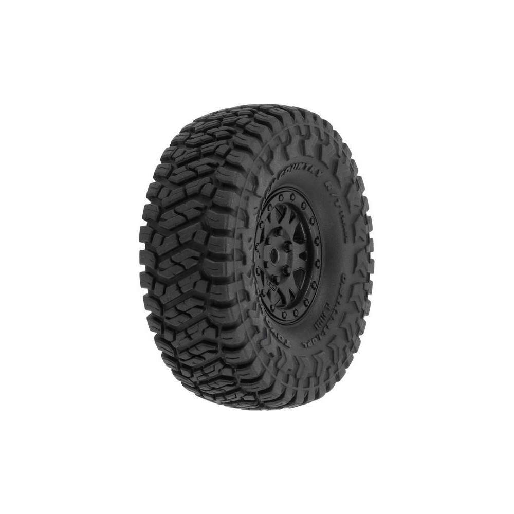 Komplett Pro-Line kerekek RC autó modellekhez Mini Rock Crawler 1:24 - Toyo Open Country 1.0", H7 fekete+ tárcsa (4 db). Méret ⌀58x22mm. A hordozó hatszögletű 7mm. A tárcsa fekete színű, M - közepes keménységű keverék.