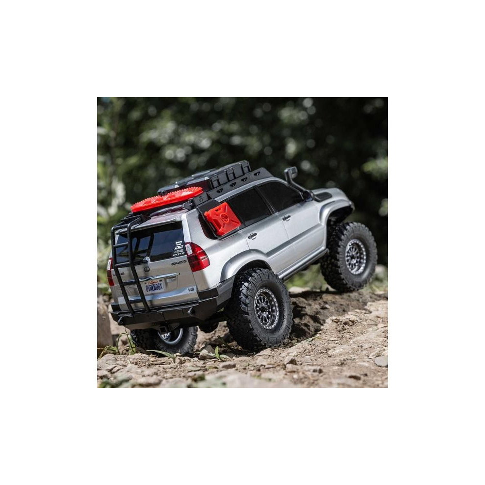 Az Axial SCX24 autó kis távirányítású modellje 1:24 méretarányban, engedéllyel rendelkező Lexus GX 470 karosszériával és LED világítással . A modell több elemből álló felfüggesztéssel, olajos lengéscsillapítókkal és terepjáró vezetéshez 4x4-es meghajtással van felszerelve . Tartalmaz egy Dynamite 88T egyenáramú motort sebességváltóval, minőségi Spektrum vezérlőegységet és egy erőteljes szervót a precíz arányos vezérléshez. Minden, amire szükséged van, a csomagban megtalálható - 2,4 GHz-es távirányítós készlet, 7,4 V-os 350 mAh-s LiPo akkumulátor és USB töltő. Az utazási idő akár 40 perc is lehet.