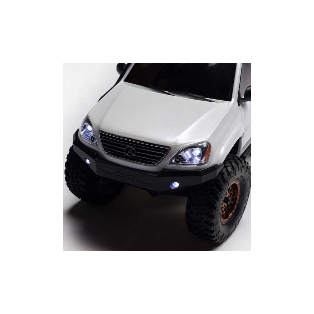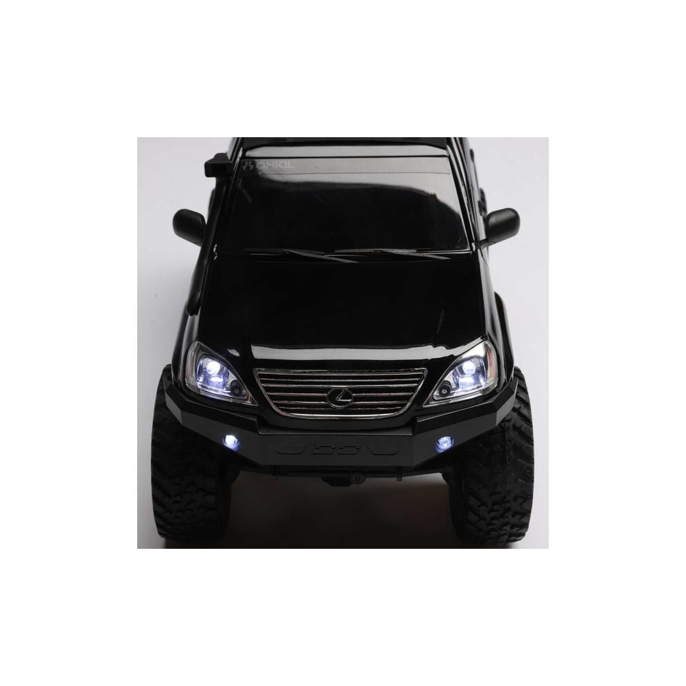 Egy Axial SCX24 autó kis távirányítású modellje, engedéllyel rendelkező Lexus GX 470 karosszériával és LED világítással . A modell több elemből álló felfüggesztéssel van felszerelve, olajos lengéscsillapítókkal a terepjáráshoz. Minden, amire szükséged van, a csomagban megtalálható - 2,4 GHz-es távirányítós készlet, 7,4 V-os 350 mAh-s LiPo akkumulátor és USB töltő. Utazási idő akár 40 perc.