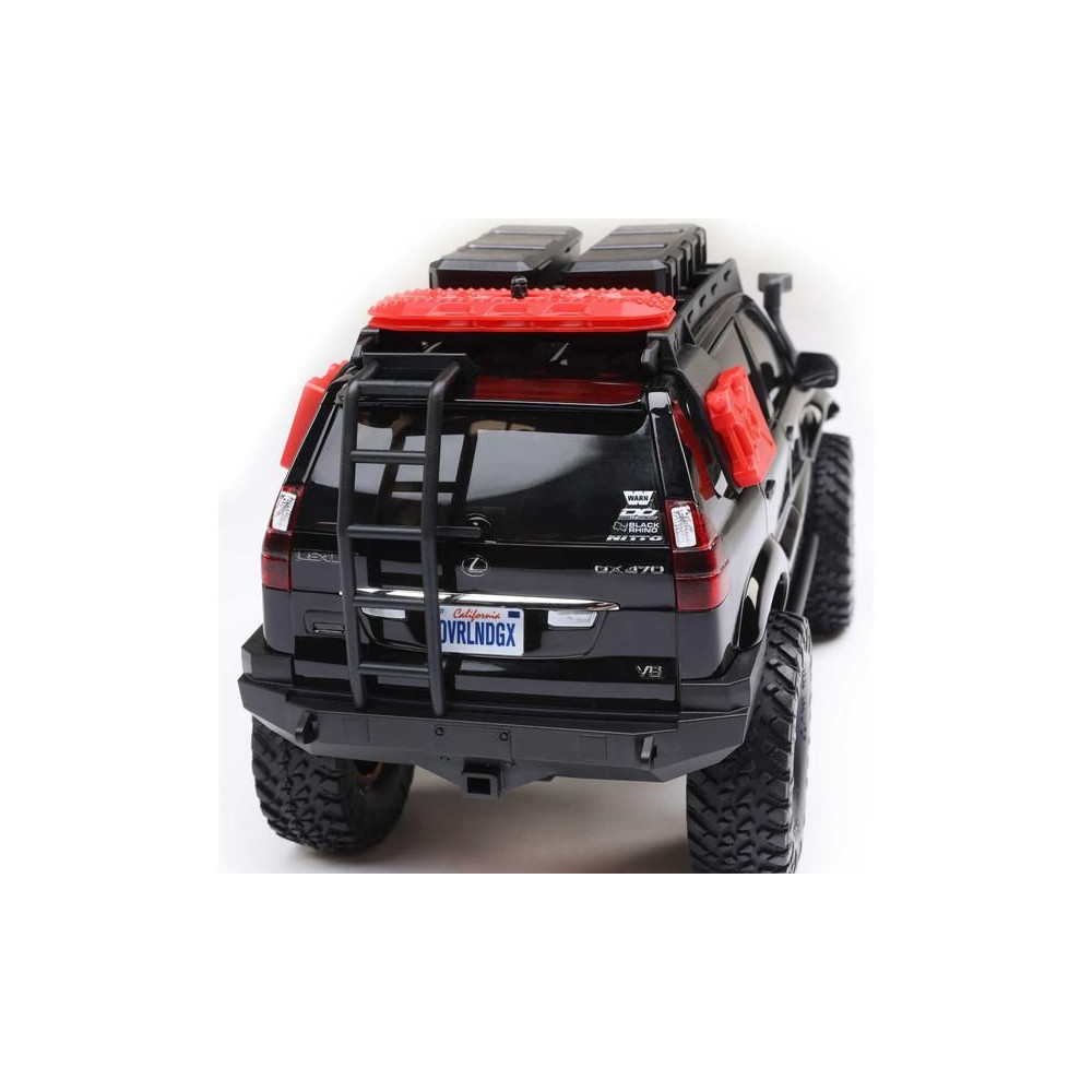 Vezetéshez a modell acél C-gerendás alvázzal, acél összekötőrudakkal ellátott többelemes felfüggesztéssel, egyenes, tömör tengelyekkel és olajos lengéscsillapítókkal van felszerelve. Mind a négy kerék állandó hajtása hajtja az egyenáramú motort a sebességváltón, a központi tengelyeken és az elosztódobozokban lévő csigakerekeken keresztül. A tartós ABS anyagból készült, licencelt Lexus karosszériát számos részlet egészíti ki, mint például a kiegészítőkkel ellátott tetőcsomagtartó, a légzőcső és végül, de nem utolsósorban az első LED-es világítás a csodálatos esti autózáshoz. A bevált Nitto Trail Grappler M/T terepgumikkal szerelt Black Rhino Raid kerekek is engedélyezettek.