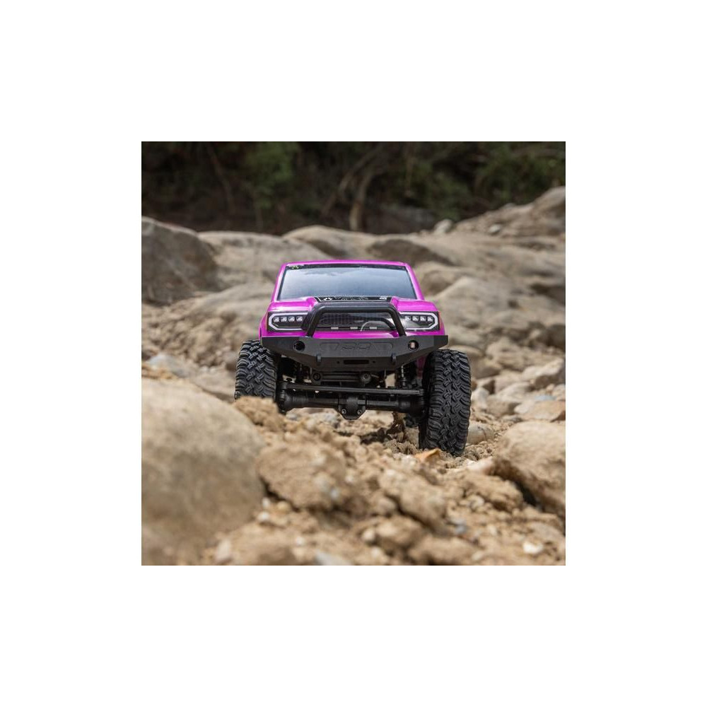 Megfizethető, kisméretű, távirányítós Axial SCX24 Base Camp autó 1:24 méretarányban. A modell több elemes felfüggesztéssel és 4x4-es meghajtással van felszerelve a terepjáráshoz. Ez egy ideális kezdő modell, amely minden szükséges funkcióval rendelkezik. Tartalmaz egy Dynamite 88T egyenáramú motort sebességváltóval, egy kiváló minőségű Spektrum vezérlőegységet és egy erőteljes szervót a precíz arányos vezérléshez. Minden, amire szükséged van, a csomagban megtalálható - 2,4 GHz-es távirányítós készlet, 7,4 V-os 350 mAh-s LiPo akkumulátor és USB töltő. Az utazási idő akár 40 perc is lehet.