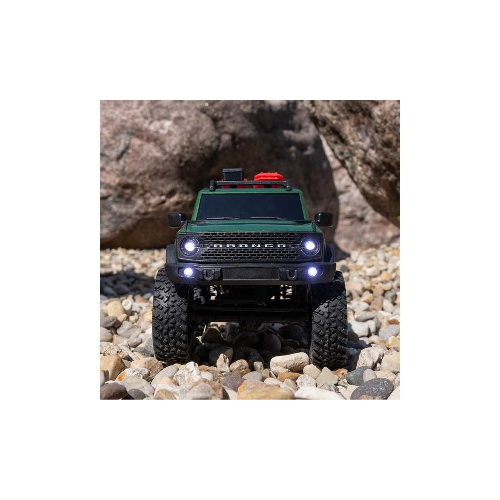 Az Axial SCX24 Ford Bronco 2021 RC autómodellel otthon, a kertben is vezethetsz, és kisebb kövekből vagy ágakból létrehozhatod a saját pályádat. Egyszerűen töltsd fel az akkumulátort egy USB töltővel, tedd be az autóba, és már indulhatsz is.