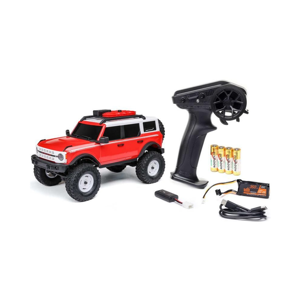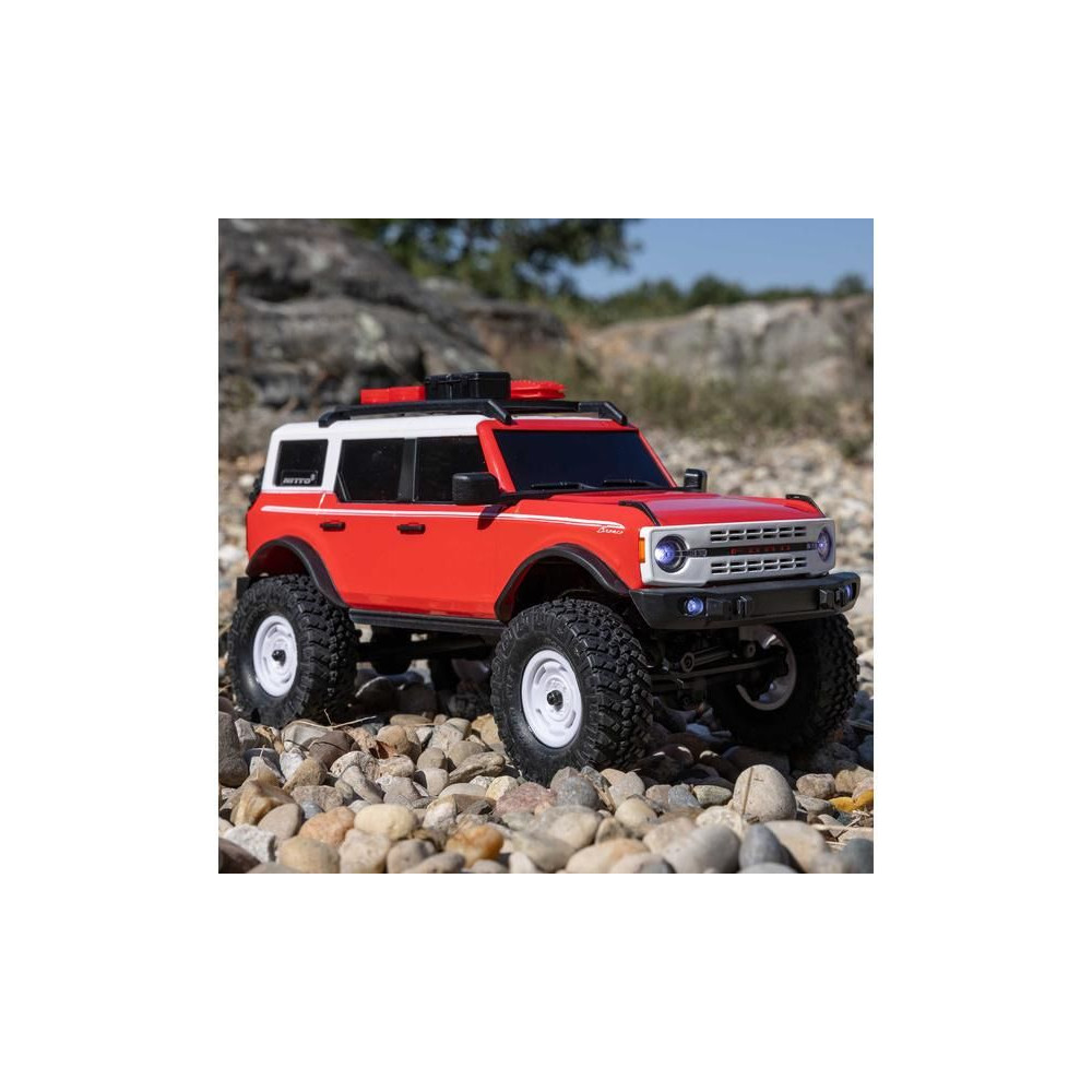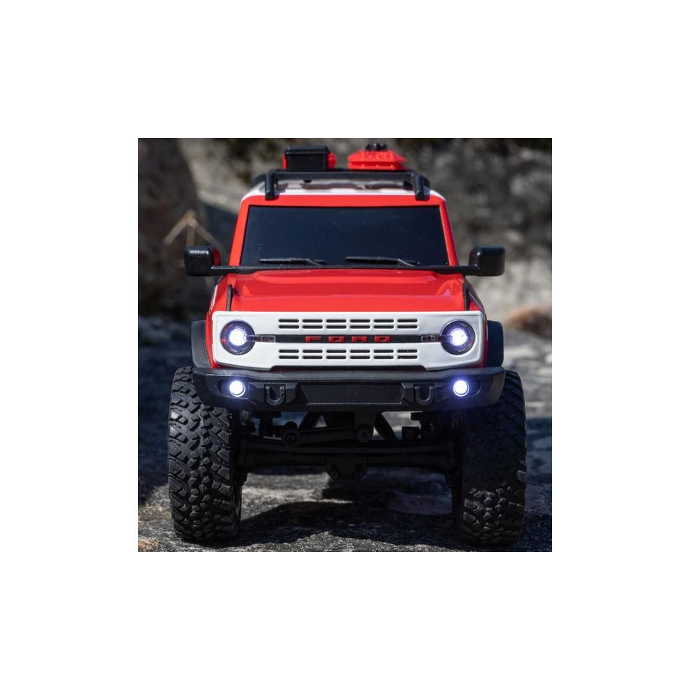 Kis, 1:24 méretarányú Axial SCX24 távirányítós autómodell, engedéllyel rendelkező Ford Bronco 2021 karosszériával és LED világítással . A modell több elemből álló felfüggesztéssel, olajos lengéscsillapítókkal és terepjáró vezetéshez 4x4-es meghajtással van felszerelve . Tartalmaz egy Dynamite 88T egyenáramú motort sebességváltóval, minőségi Spektrum vezérlőegységet és egy erőteljes szervót a precíz arányos vezérléshez. Minden, amire szükséged van, a csomagban megtalálható - 2,4 GHz-es távirányítós készlet, 7,4 V-os 350 mAh-s LiPo akkumulátor és USB töltő. Az utazási idő akár 40 perc is lehet.