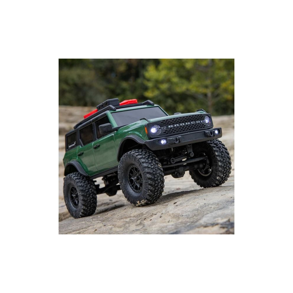 Kis, 1:24 méretarányú Axial SCX24 távirányítós autómodell, engedéllyel rendelkező Ford Bronco 2021 karosszériával és LED világítással . A modell több elemből álló felfüggesztéssel, olajos lengéscsillapítókkal és terepjáró vezetéshez 4x4-es meghajtással van felszerelve . Tartalmaz egy Dynamite 88T egyenáramú motort sebességváltóval, minőségi Spektrum vezérlőegységet és egy erőteljes szervót a precíz arányos vezérléshez. Minden, amire szükséged van, a csomagban megtalálható - 2,4 GHz-es távirányítós készlet, 7,4 V-os 350 mAh-s LiPo akkumulátor és USB töltő. Az utazási idő akár 40 perc is lehet.
