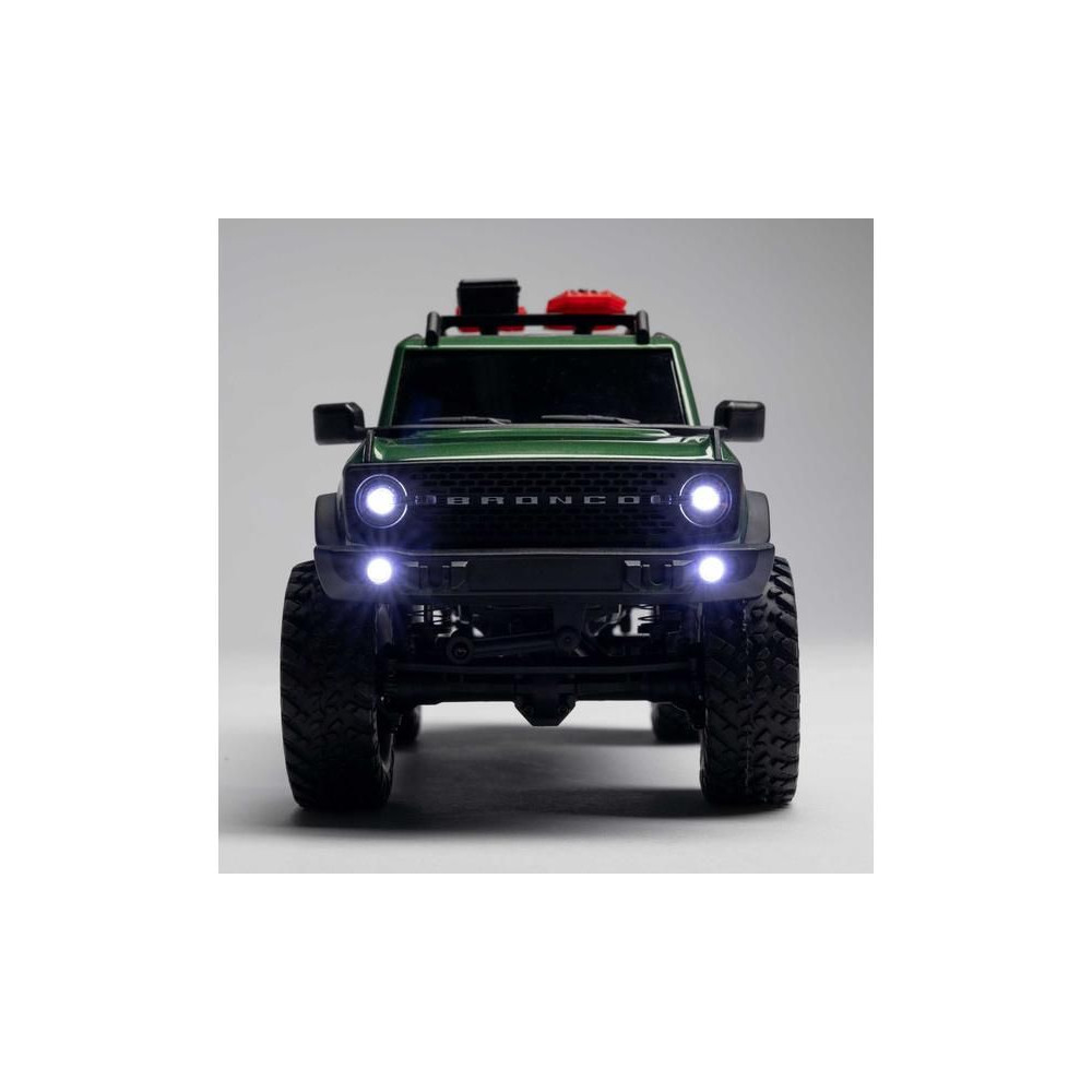 A modell hivatalos licenccel ellátott, 2021-es Ford Bronco modellkarosszériával van felszerelve, amely hűen másolja azokat a részleteket, amelyekkel gazdagon felszerelték. A modellen látható az első hűtőrács, a visszapillantó tükrök, az ajtókilincsek, a tetőcsomagtartó és egyebek makettje. A tartós ABS-ből készült test több színben kapható, csak válaszd ki a számodra legmegfelelőbbet.