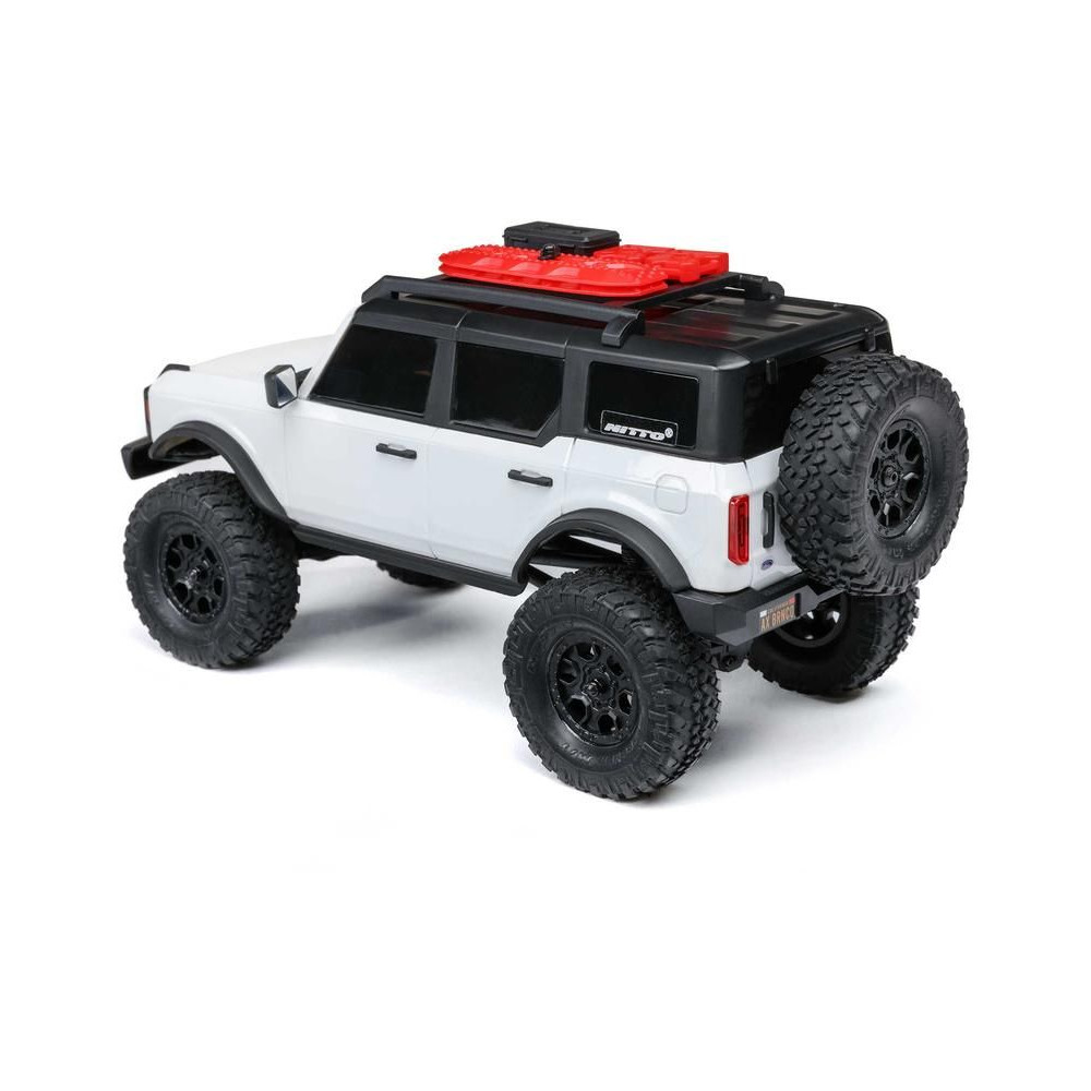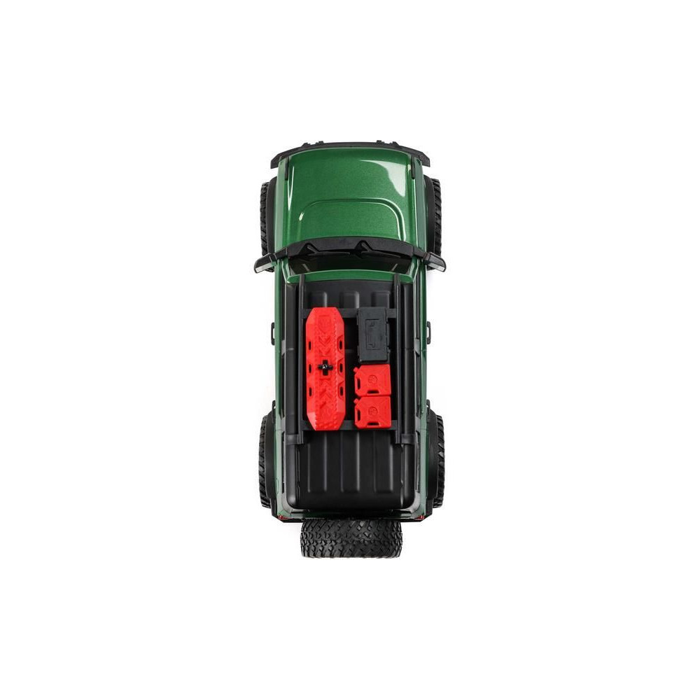 Vezetéshez a modell acél C-gerendás alvázzal, acél összekötőrudakkal ellátott többelemes felfüggesztéssel, egyenes, tömör tengelyekkel és olajos lengéscsillapítókkal van felszerelve. Mind a négy kerék állandó hajtása hajtja az egyenáramú motort a sebességváltón, a központi tengelyeken és az elosztódobozokban lévő csigakerekeken keresztül. A tartós ABS anyagból készült, licencelt Bronco 2021 karosszériát számos részlet egészíti ki, mint például a kiegészítőkkel ellátott tetőcsomagtartó, az első maszk, a tükrök, a pótkerék és végül, de nem utolsósorban az első LED-es világítás a lenyűgöző esti túrákhoz. A Nitto Trail Grappler M/T terepgumik is engedélyezettek.