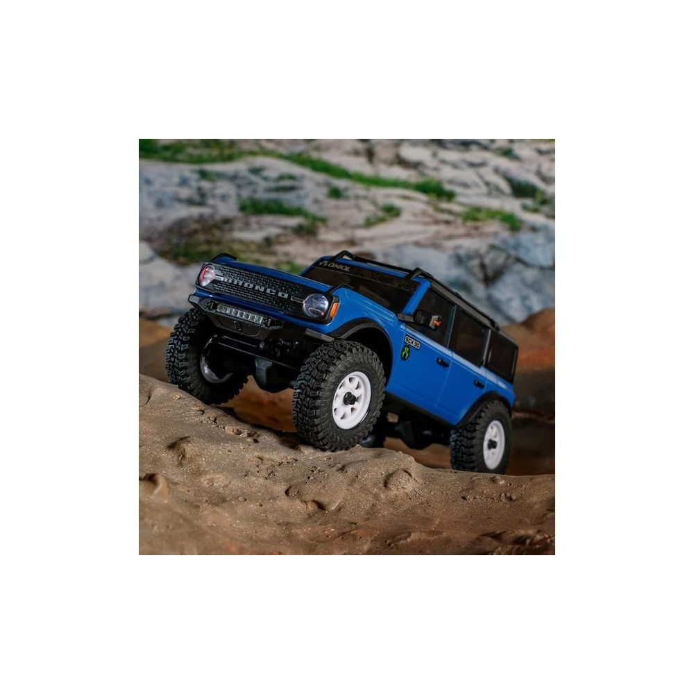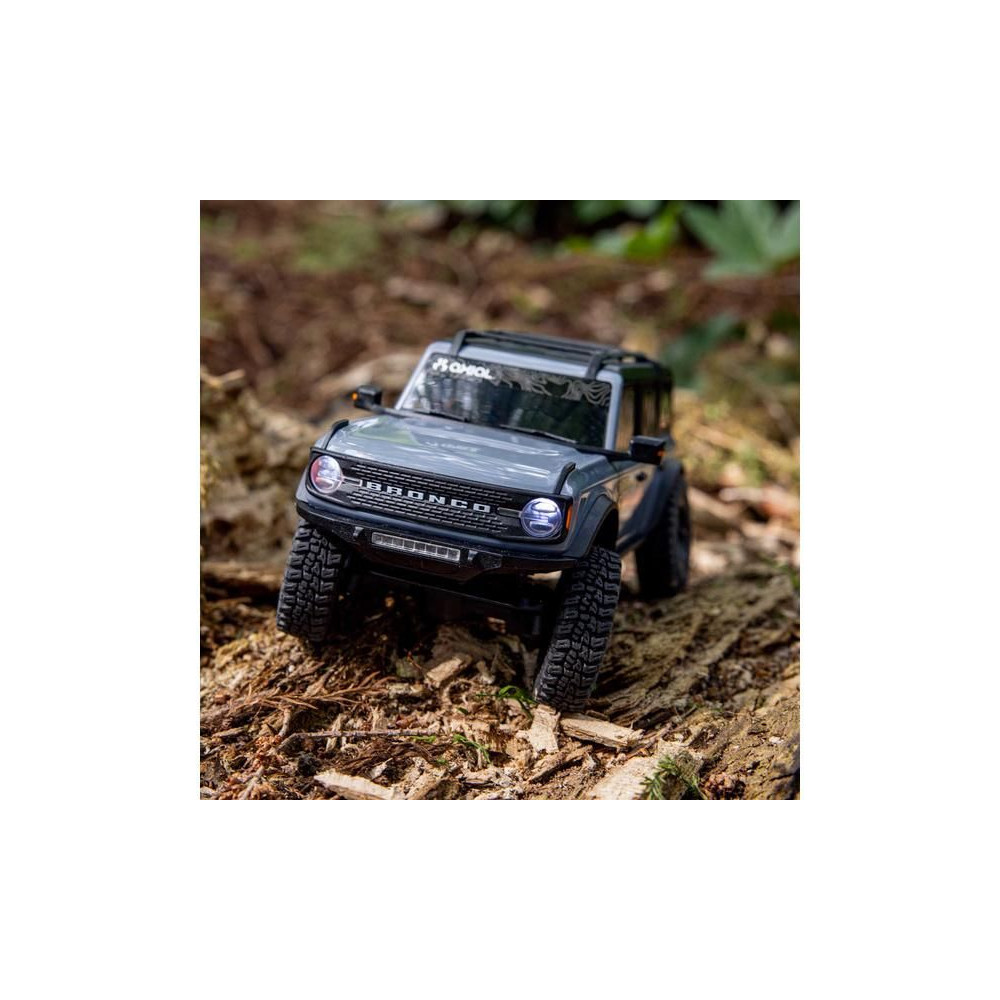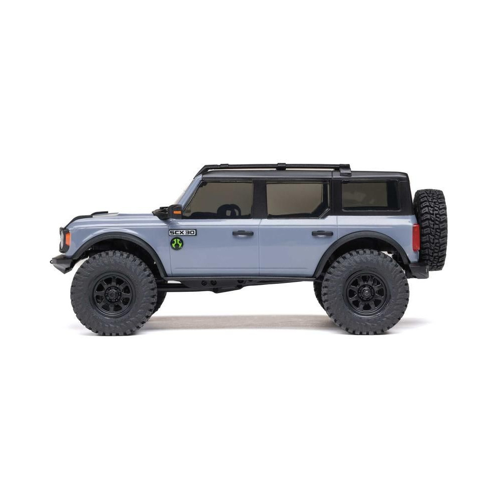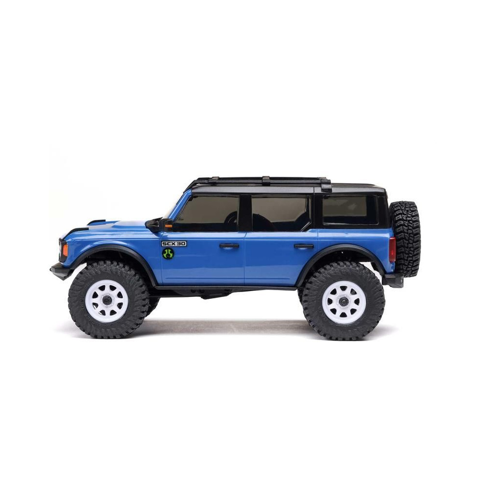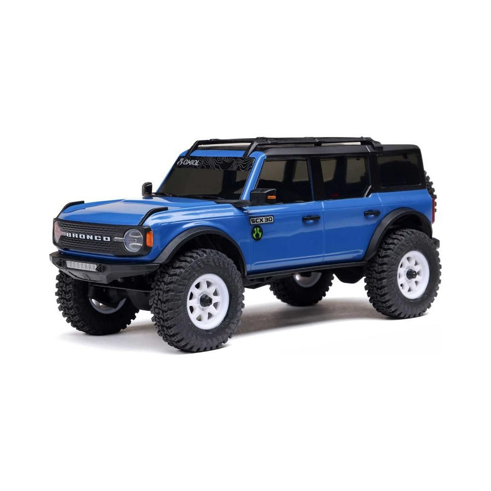 Az Axial SCX30 Ford Bronco egy hihetetlenül kicsi, 1:30 méretarányú expedíciós RC autómodell , amely azonban megtartja a nagyobb modellek összes funkcióját, részletét és vezetési jellemzőjét. Mindössze 16 cm-es hosszával teljes felszerelést tartalmaz az akadályok leküzdéséhez és számtalan órányi szórakozáshoz. A modell többpontos felfüggesztéssel, állandó 4x4-es meghajtással, proporcionális gáz- és kormányvezérléssel, valamint részletesen kidolgozott, licencelt ABS karosszériával, első és hátsó LED-es világítással rendelkezik. Minden a működtetéshez benne van - a modellbe teljes elektronika és egy nagy teljesítményű egyenáramú motor van beépítve, a csomag a kormánykerék-adó mellett egy 2S LiPo 160mAh akkumulátort és egy USB töltőt is tartalmaz.