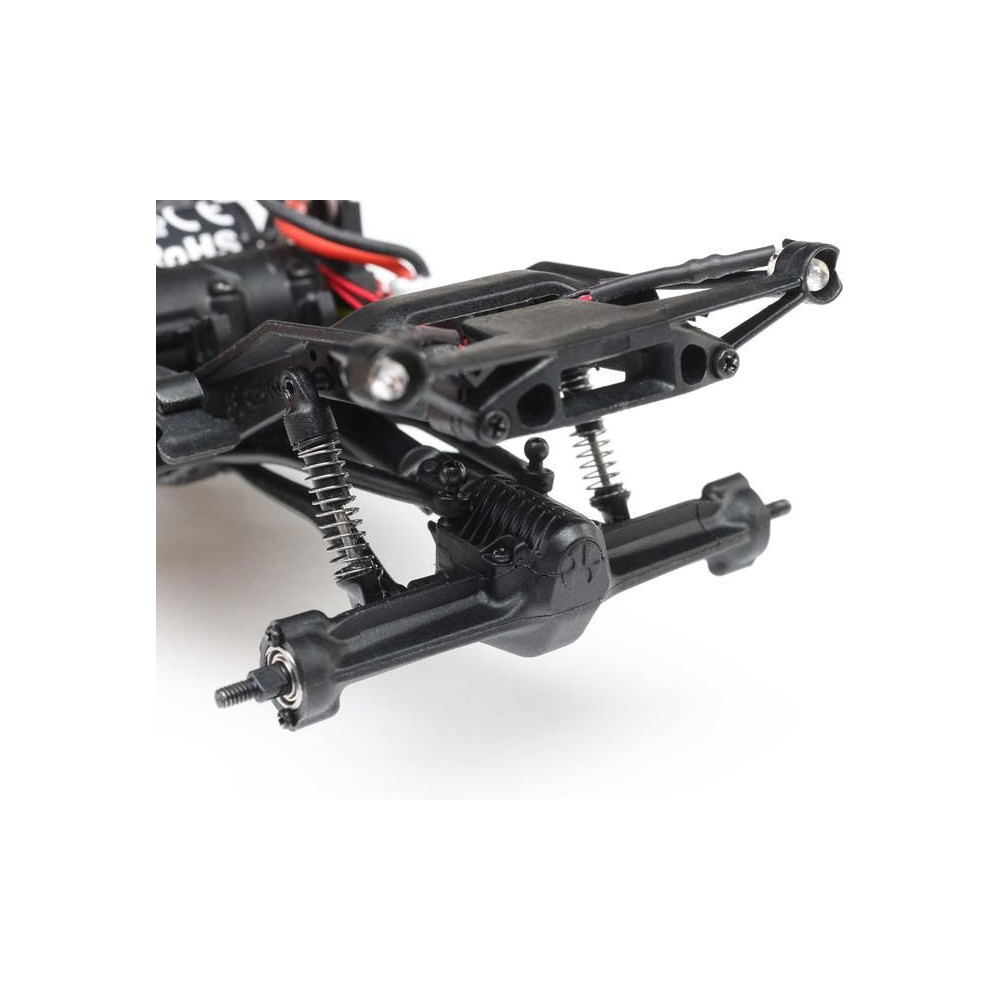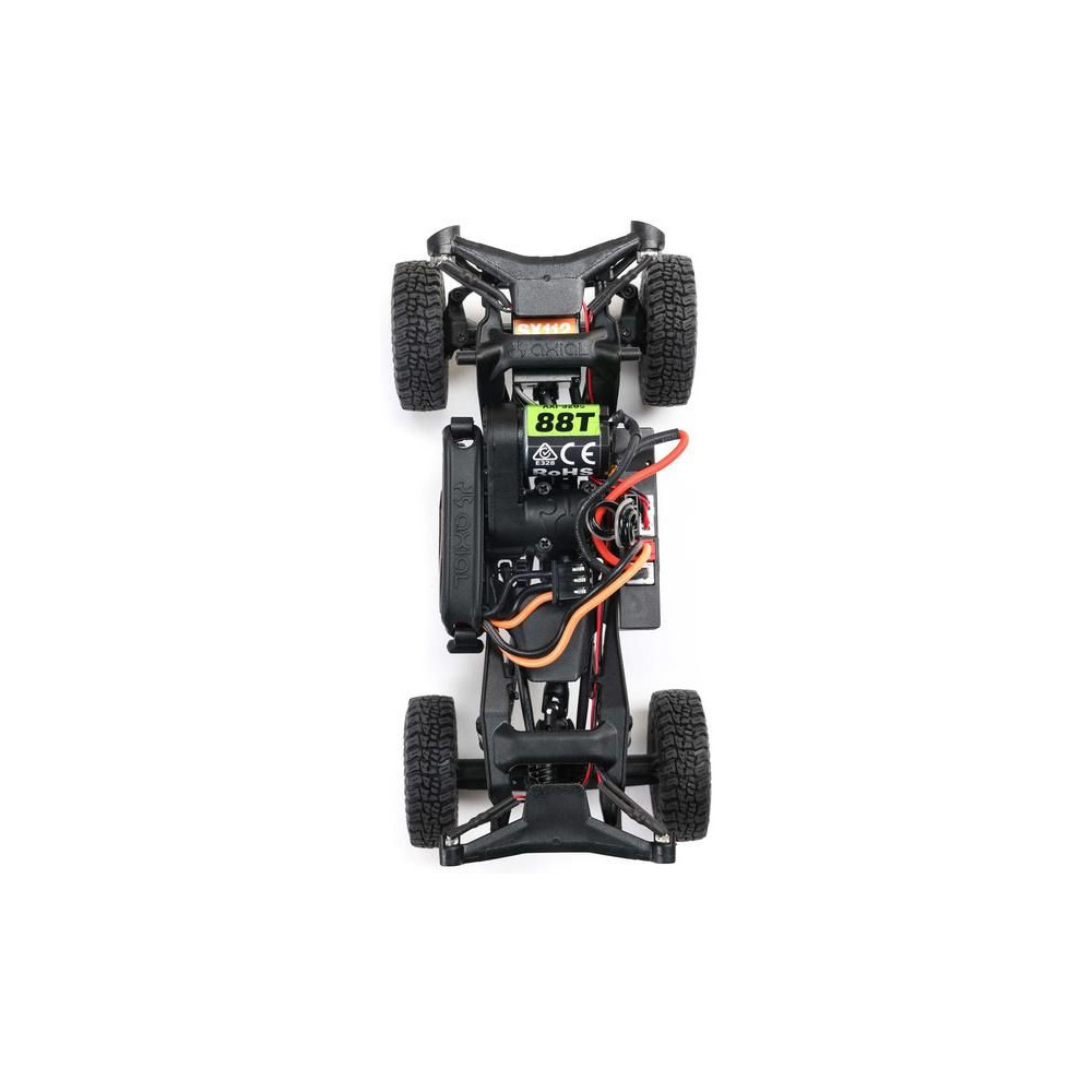 Az SCX30 platform újonnan tervezett alváza ferde védőburkolatokat tartalmaz, amelyek után a modell könnyedén átcsúszik az akadályokon. Az egyenes tengelyek ferde rudakkal nagy központi hasmagasságot biztosítanak. A teljes mértékben működőképes felfüggesztést rugós lengéscsillapítók támasztják alá. Az Axial 88T motor teljesítménye a sebességváltón és a kardántengelyeken keresztül jut el a kerekekhez, míg a hajtáslánc golyóscsapágyakat használ a sima működés érdekében. A hivatalosan engedélyezett Mickey Thompson Baja Boss gumiabroncsok puha keverékből készülnek a nagy tapadás érdekében.