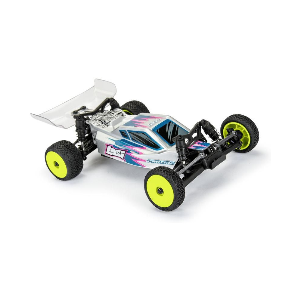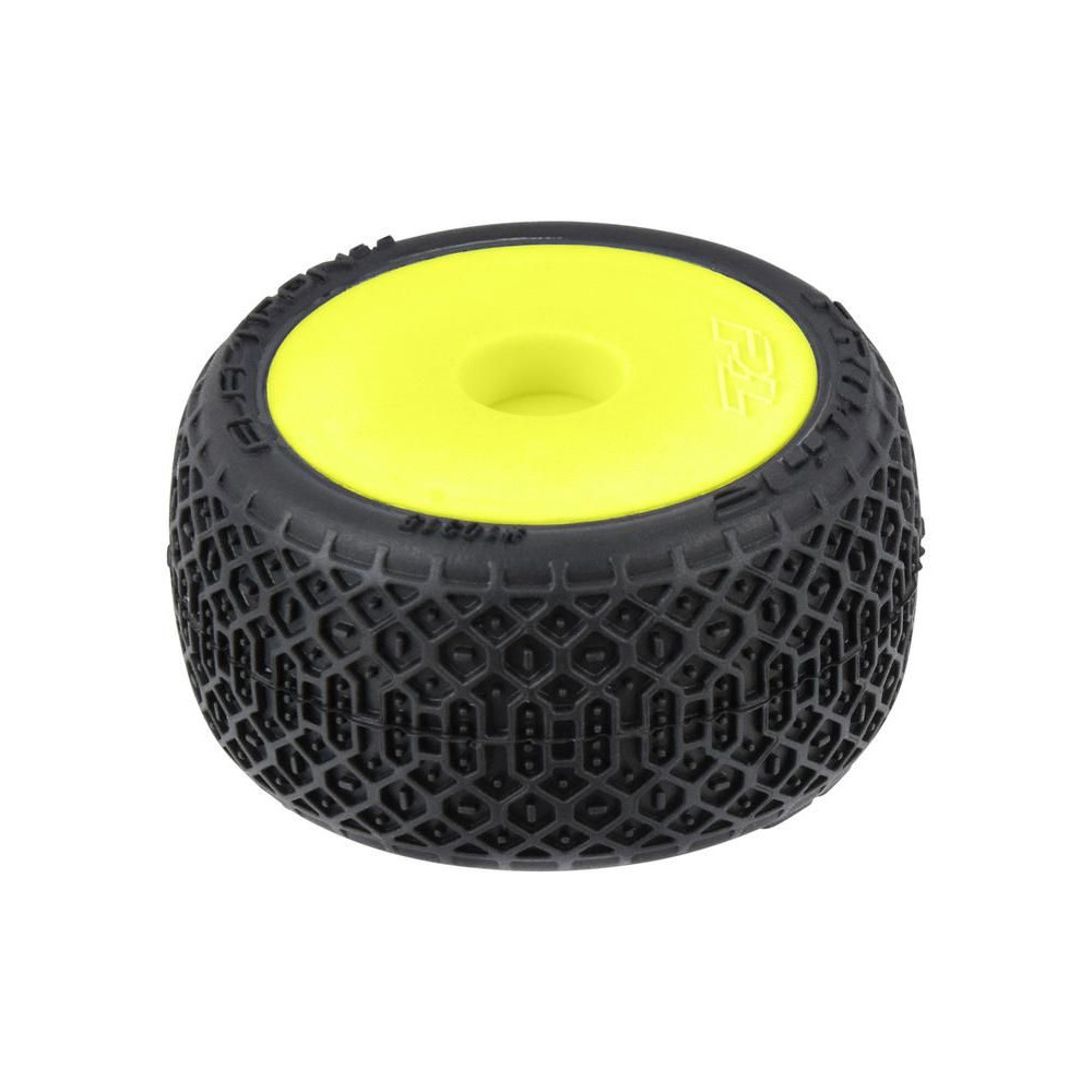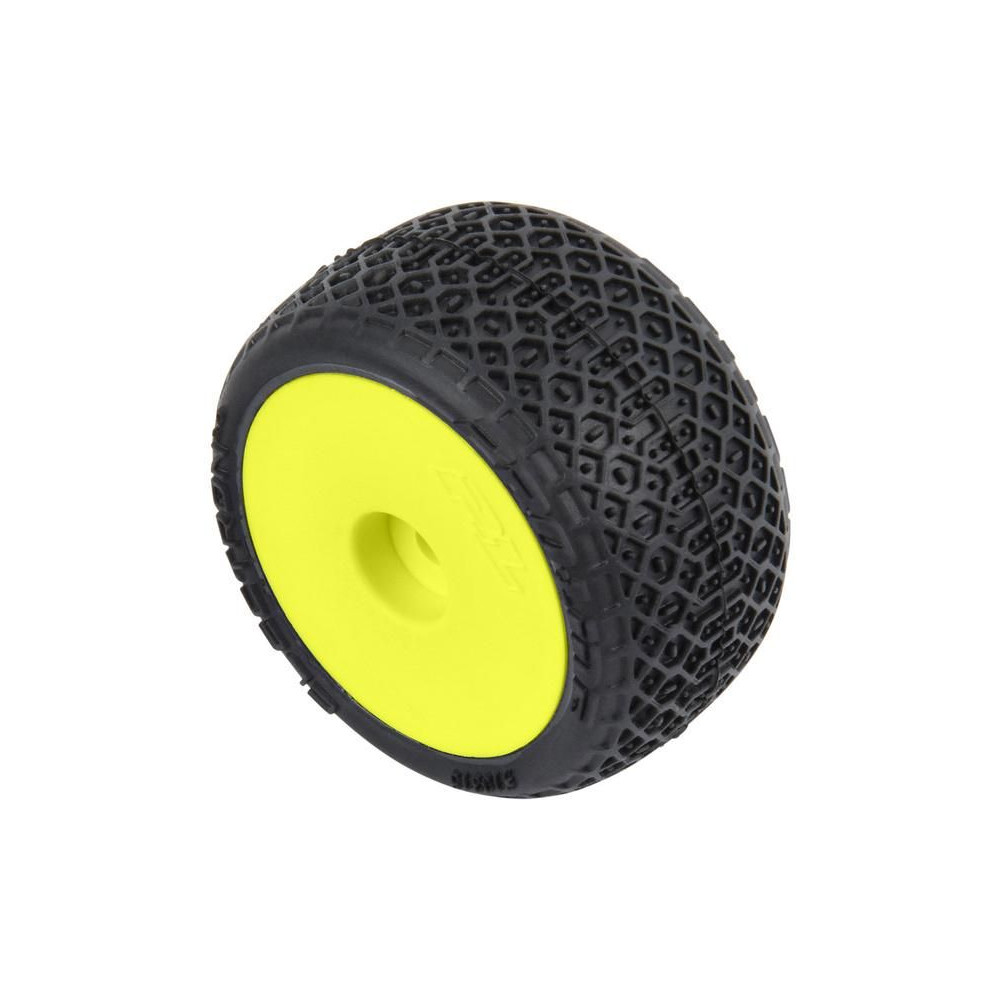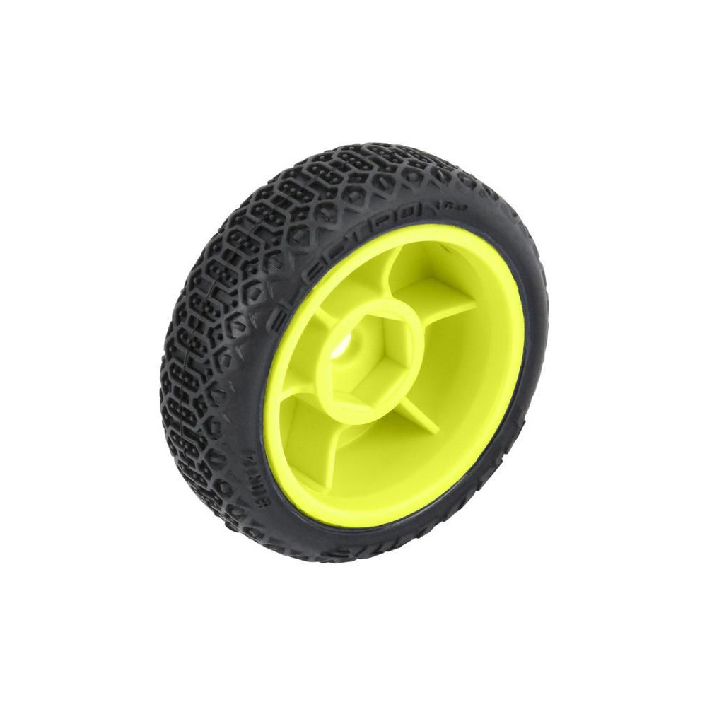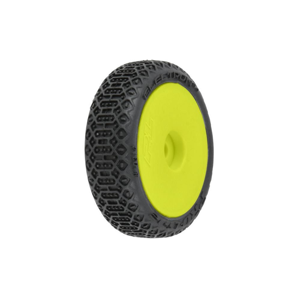 Első és hátsó komplett Pro-Line kerekek 1:24-es RC autómodellekhez (Losi Micro-B). A tárcsa sárga. Electron 2.0 gumik - elöl és hátul. A vezetőfülke 7 mm-es hatszögletű. Nyitott cellás betét.