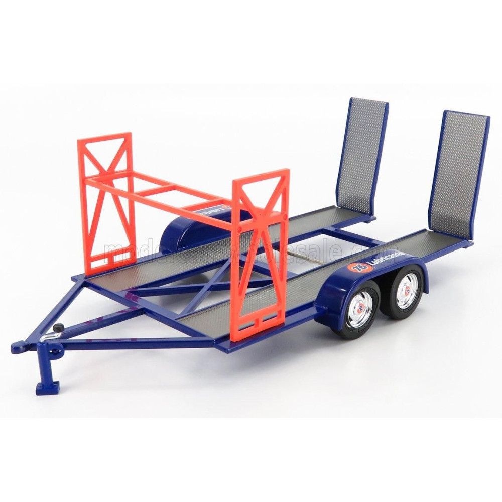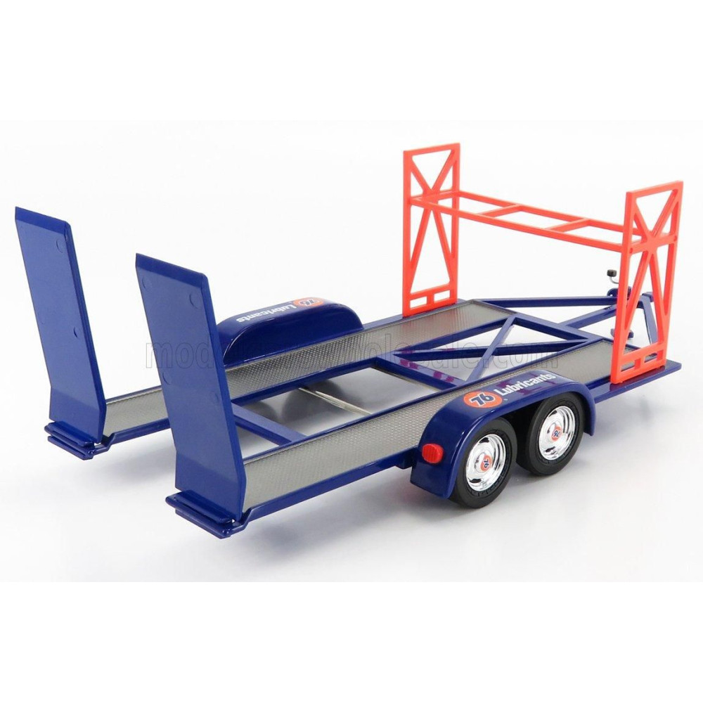 GMP ACCESSORIES CARRELLO TRASPORTO AUTO 2-ASSI - AUTÓSZÁLLÍTÓ PÓTKOCSI UNION 76 - KÉK NARANCS SZÜRKE 1/18