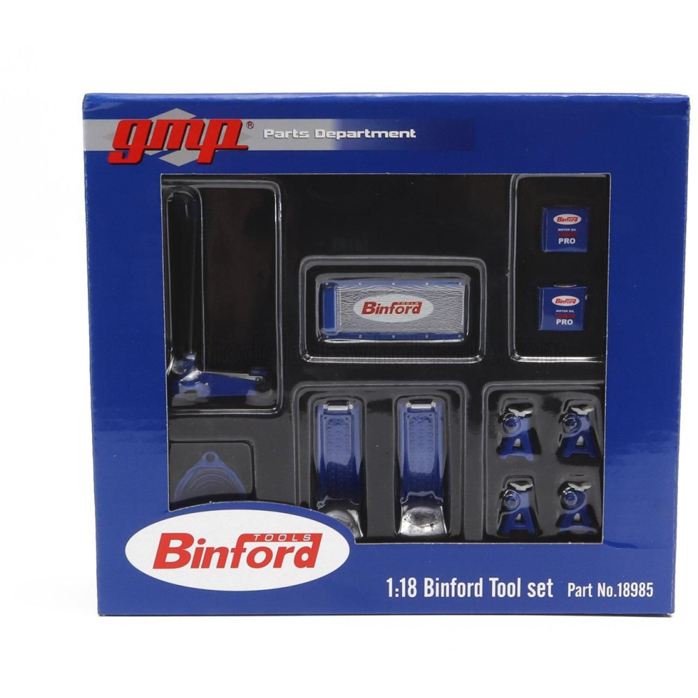 GMP TARTOZÉKKÉSZLET OFFICINA GARÁZS SZERSZÁMKÉSZLET BINFORD - KÉK EZÜST 1/18