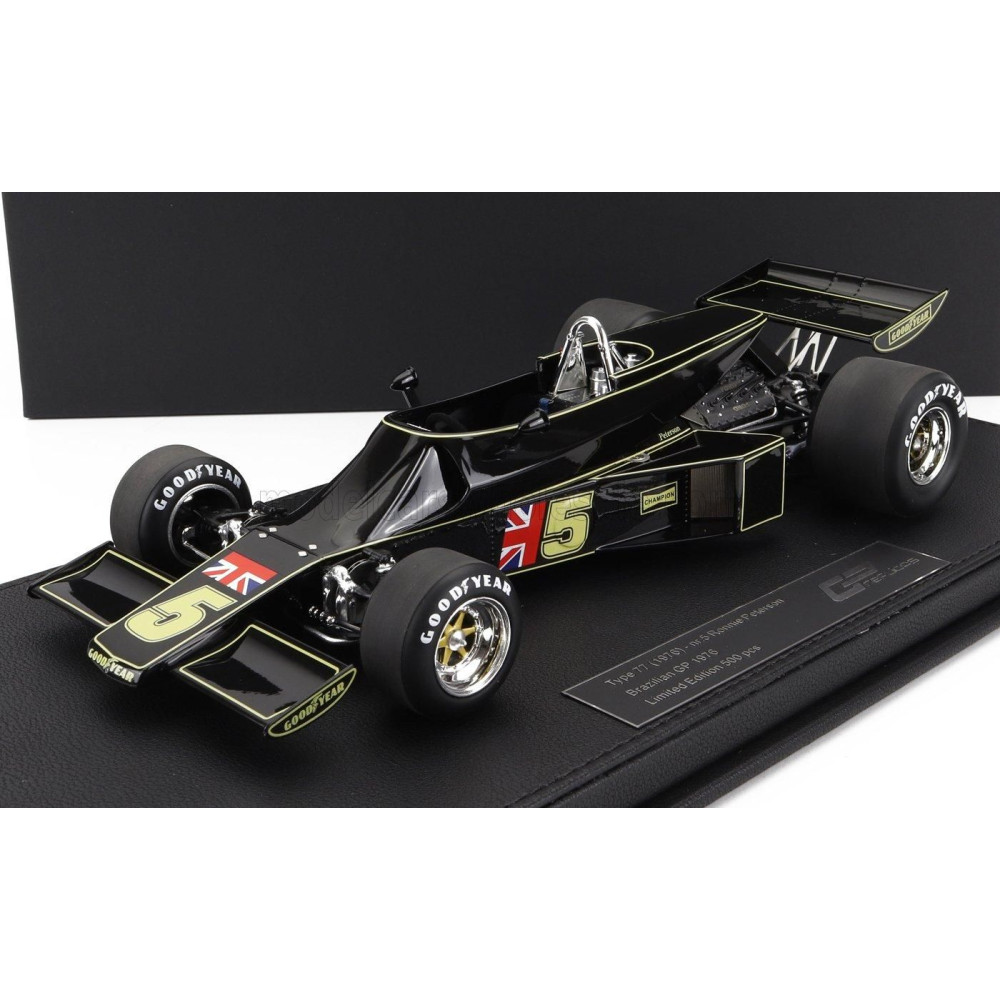 GP REPLICAS LOTUS F1 77 JOHN PLAYER TEAM LOTUS N 5 BRAZIL GP 1976 RONNIE PETERSON - JPS FEKETE ARANY 1/18