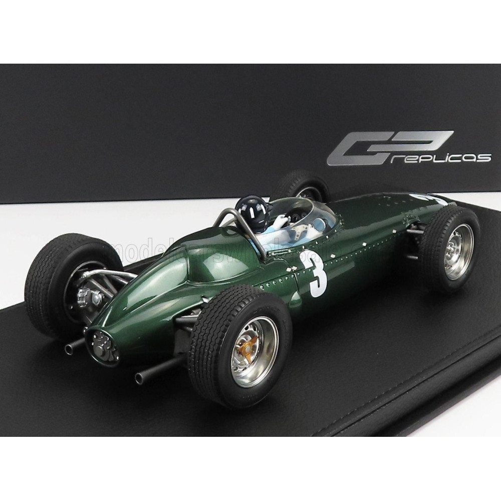 GP REPLICAS BRM F1 P57 BRM TEAM N 3 NYERTES DÉL-AFRIKA VILÁGBAJNOK (pilóta figurával) 1962 GRAHAM HILL - CON VETRINA - WITH