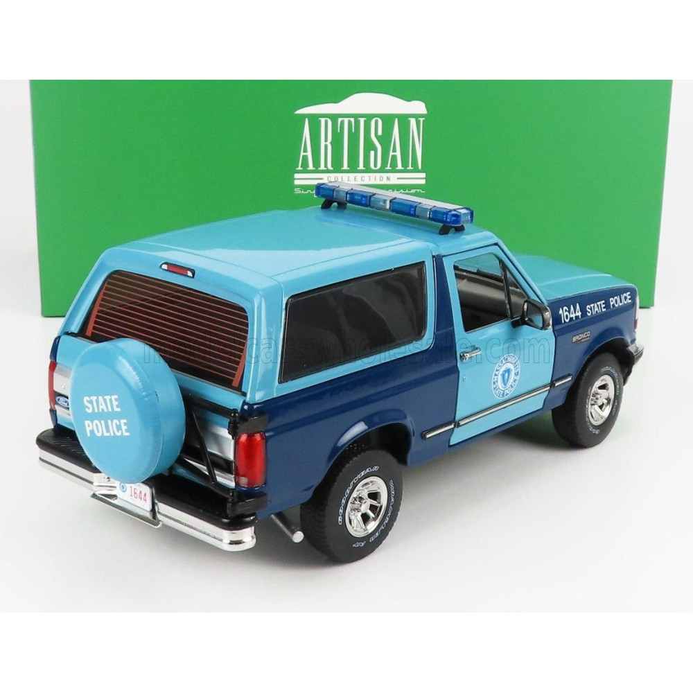 GREENLIGHT FORD USA BRONCO XLT MASSACHUSETTS ÁLLAMI RENDŐRSÉG 1996 - 2 TÓNUSÚ KÉK 1/18