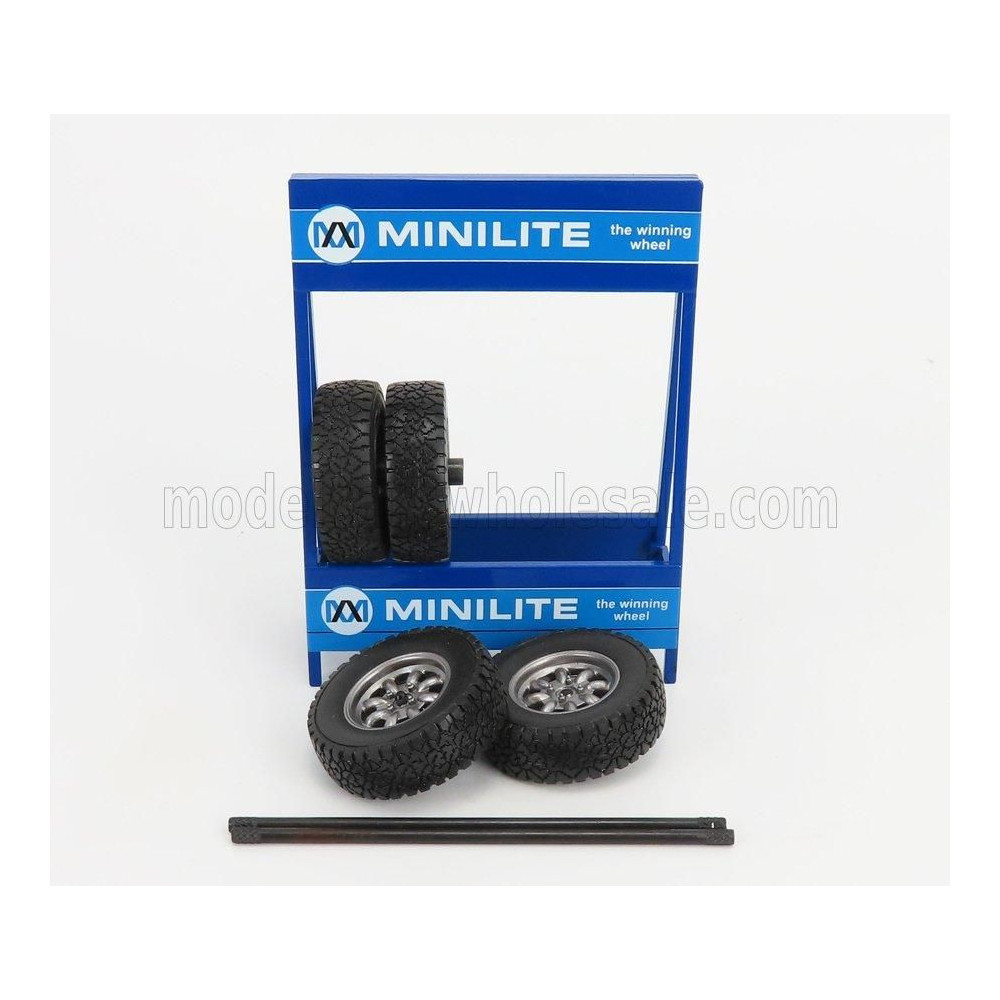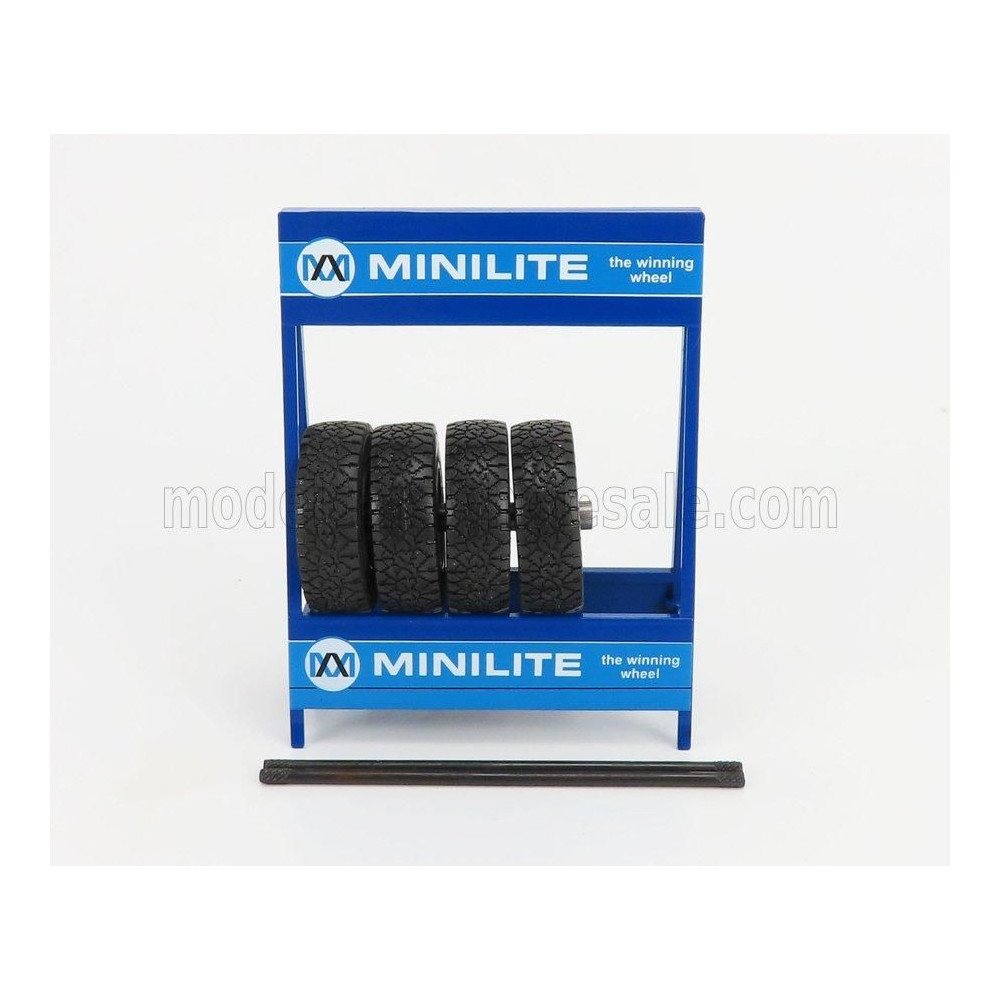 IXO MODELS TARTOZÉKOK CAVALLETTO SUPPORTO 4X PNEUMATICI MINILITE - FÉM ÁLLVÁNY 4X GUMIABRONCSOKKAL - KÉK FEKETE 1/18