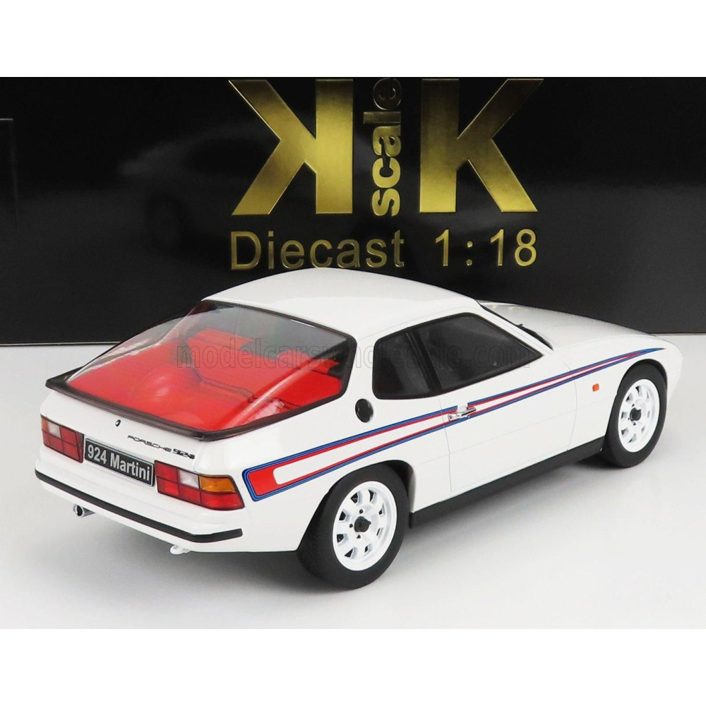 KK SCALE PORSCHE 924 MARTINI LIVERY 1985 - FEHÉR PIROS KÉK 1/18