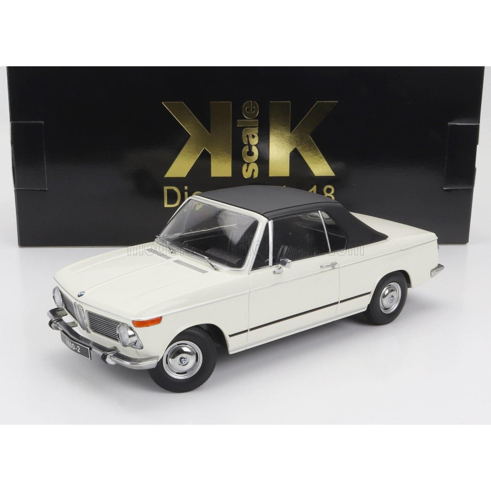 KK MÉRETARÁNYÚ BMW 1600-2 CABRIOLET 1968 - LEVEHETŐ SZÖVETTETŐVEL - FEHÉR 1/18