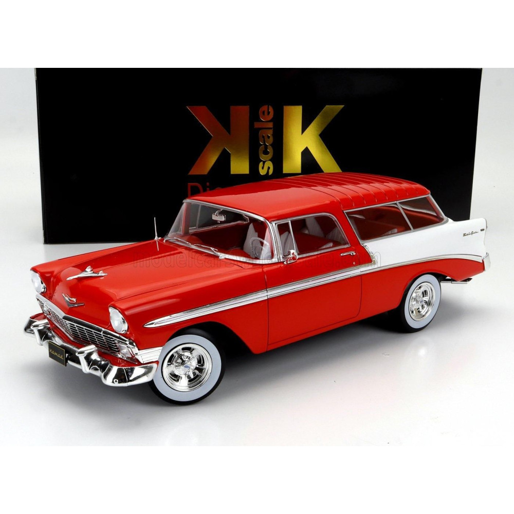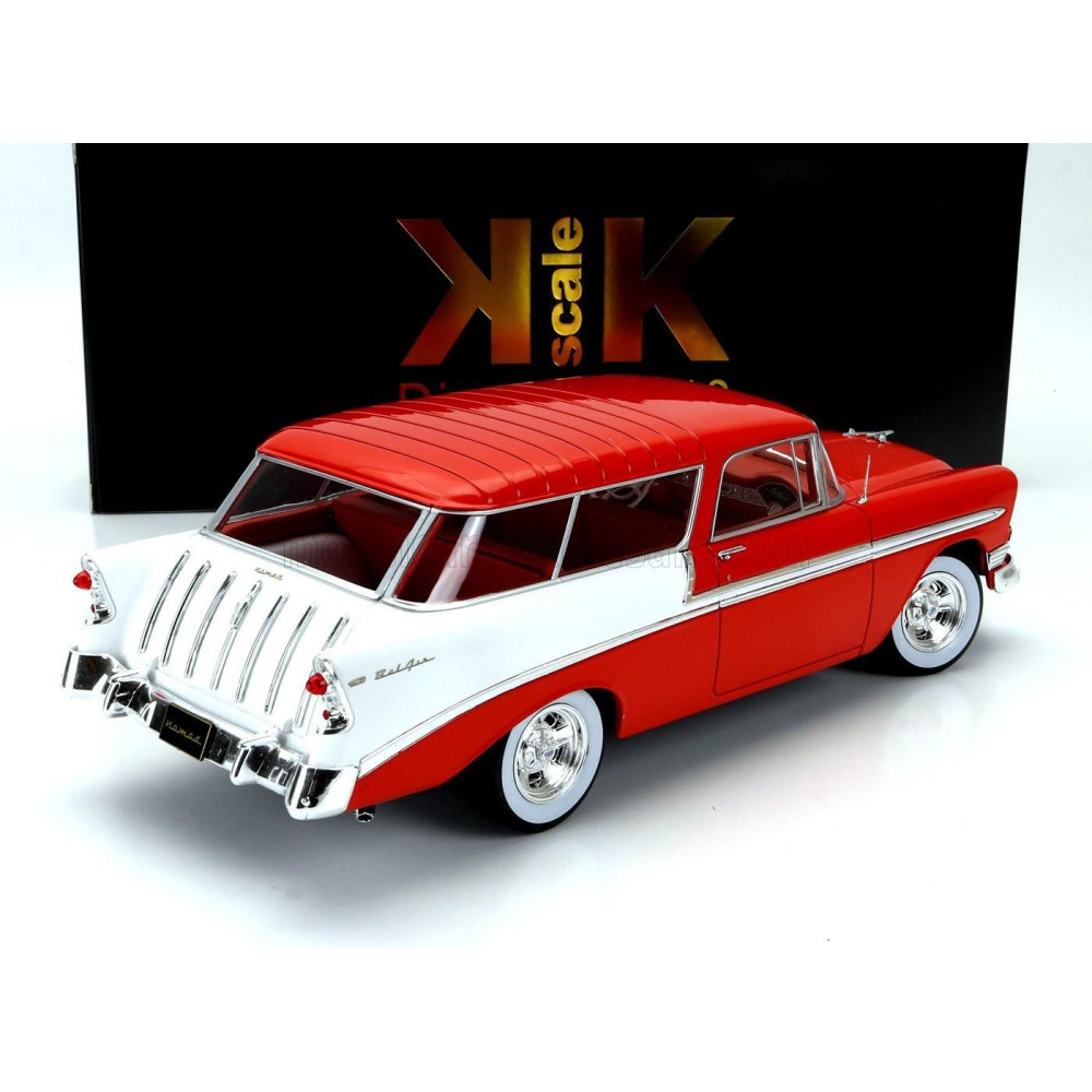 KK MÉRETARÁNYÚ CHEVROLET BEL AIR NOMAD SW KOMBI CUSTOM 1956 - PIROS-FEHÉR 1/18