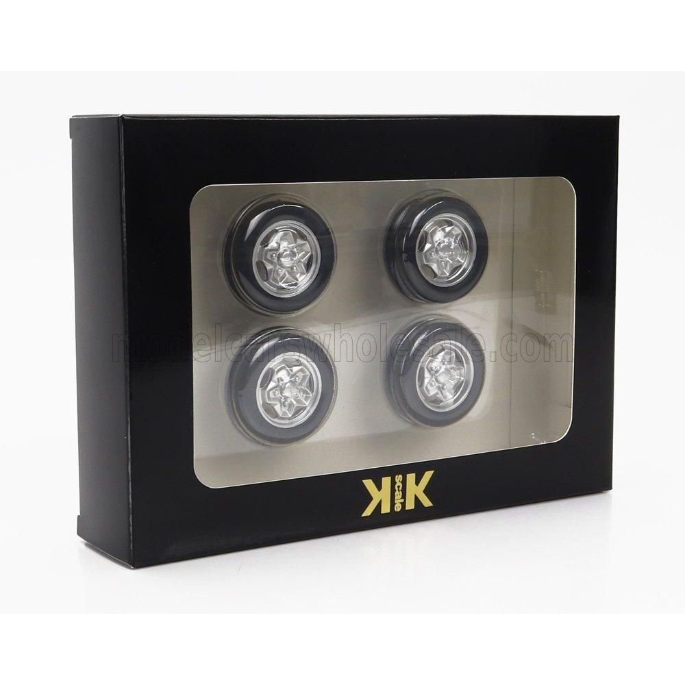 KK MÉRETARÁNYOS TARTOZÉK SZETT 4X KEREKEK ÉS HACKMESSER FELNIK PORSCHE 911 CARRERA CLUBSPORTHOZ - EZÜST 1/18